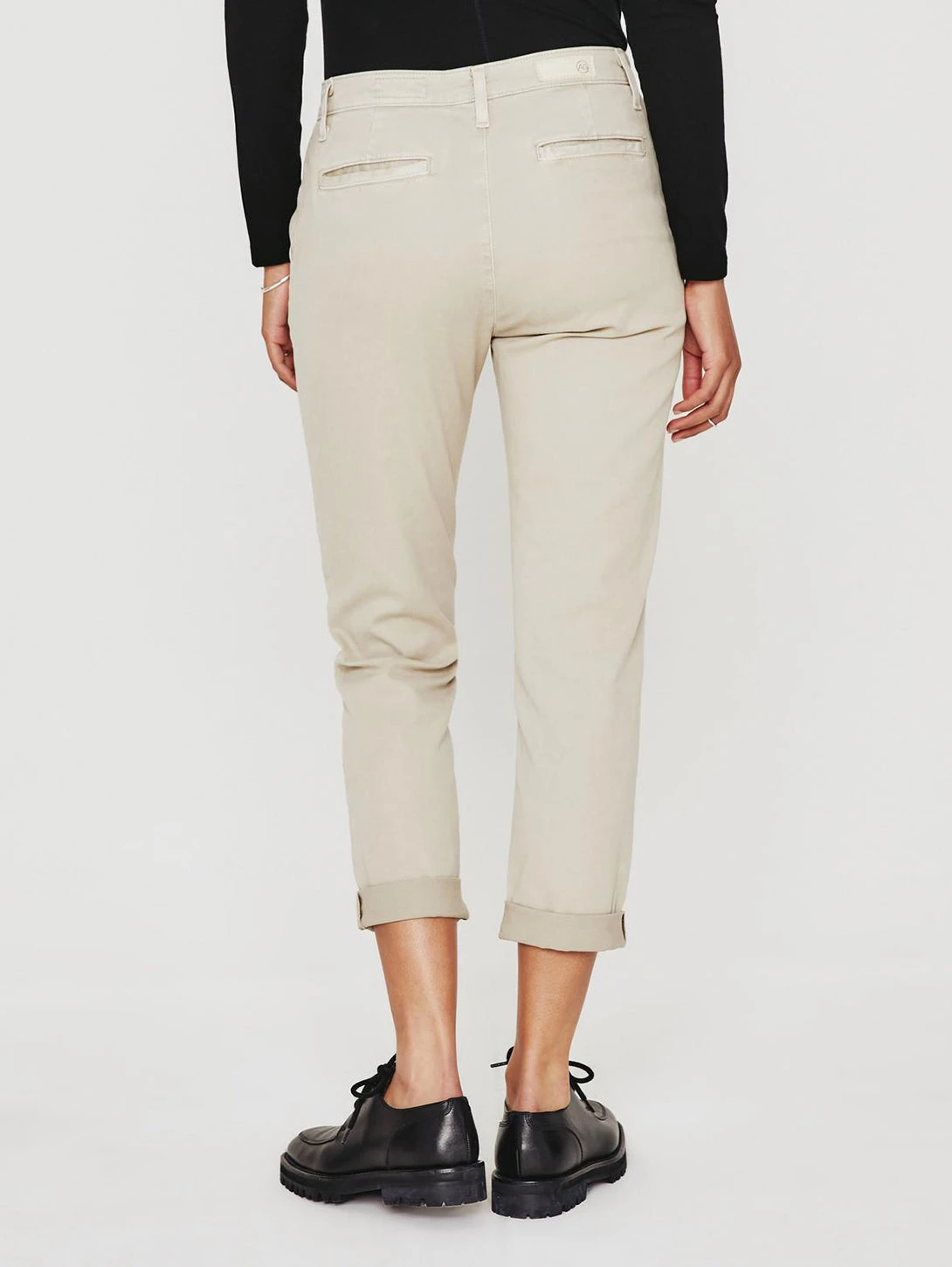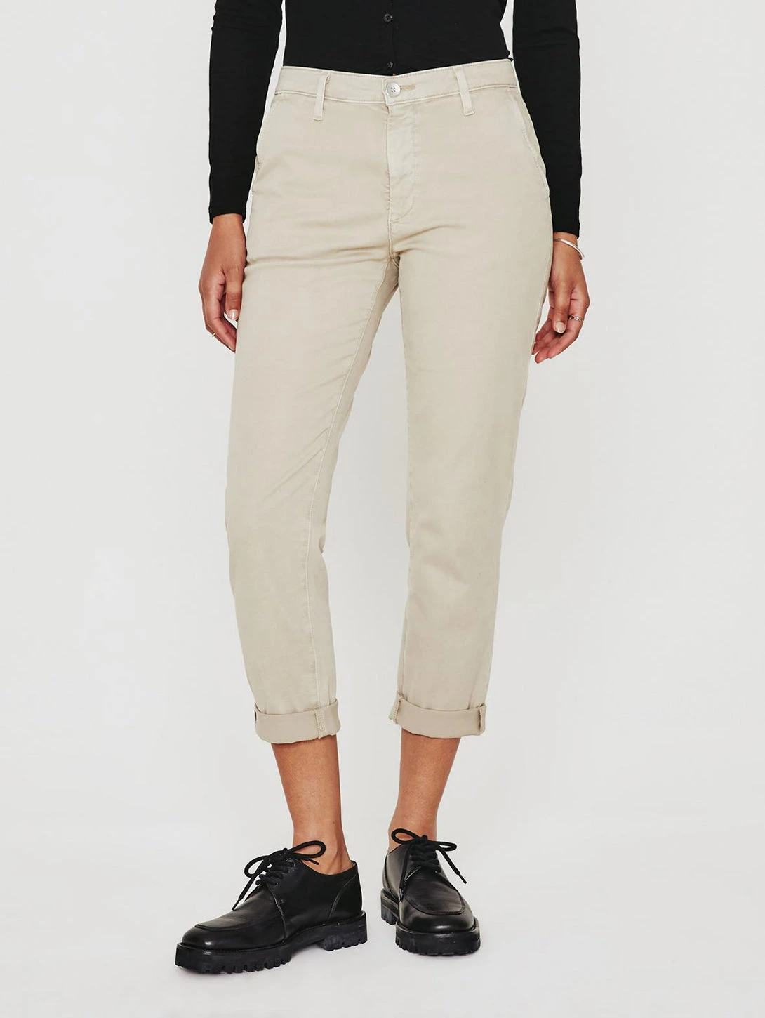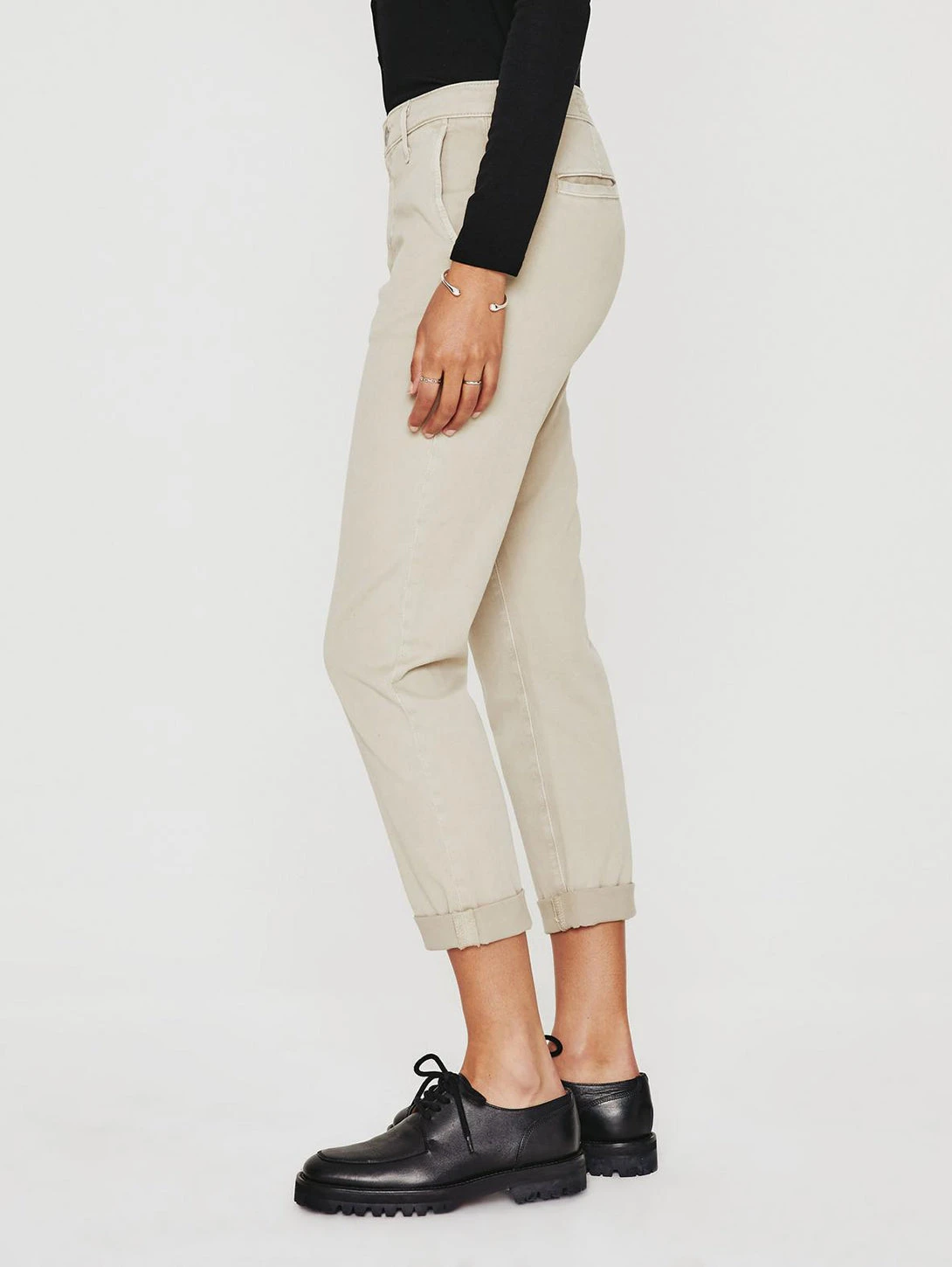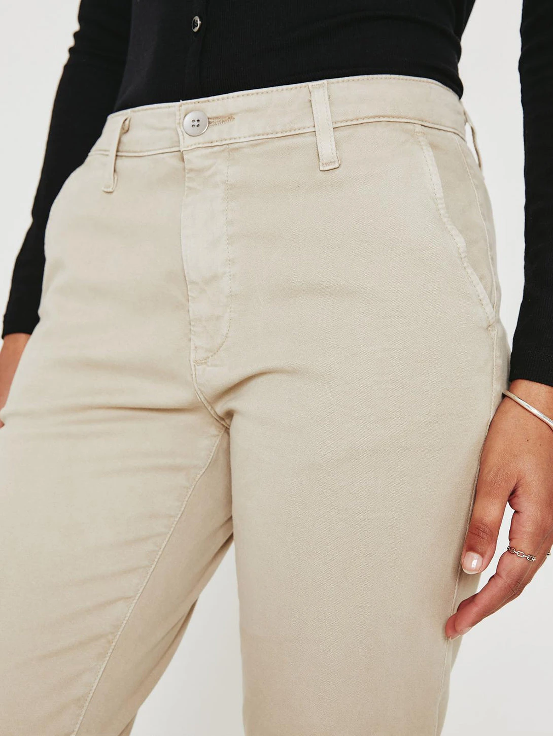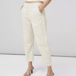 Caden Tailored Trouser Pant for women features a dusty beige hue on Sumptuous Stretch Broken Twill, a relaxed fit through the hip, slight tapering at the thigh, and a cropped ankle. This women’s trouser is designed in a luxurious lightweight fabric with comfortable super stretch wear.