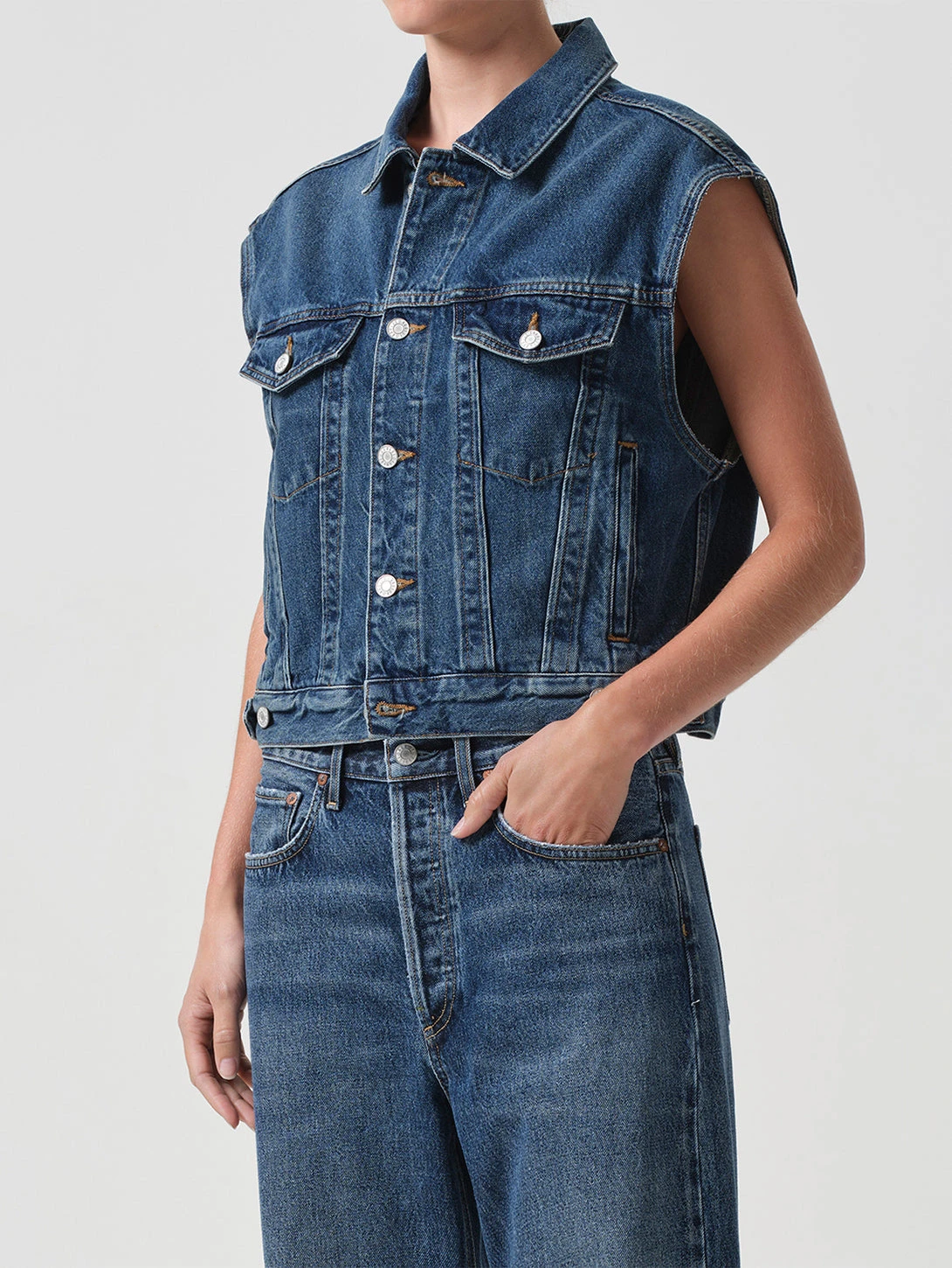 This new Charli Vest offers that effortlessly cool look with a slightly oversized silhouette giving that perfect slouchy, relaxed look. Boasting the same iconic vintage design features as our beloved Charli jacket, style over anything and everything.