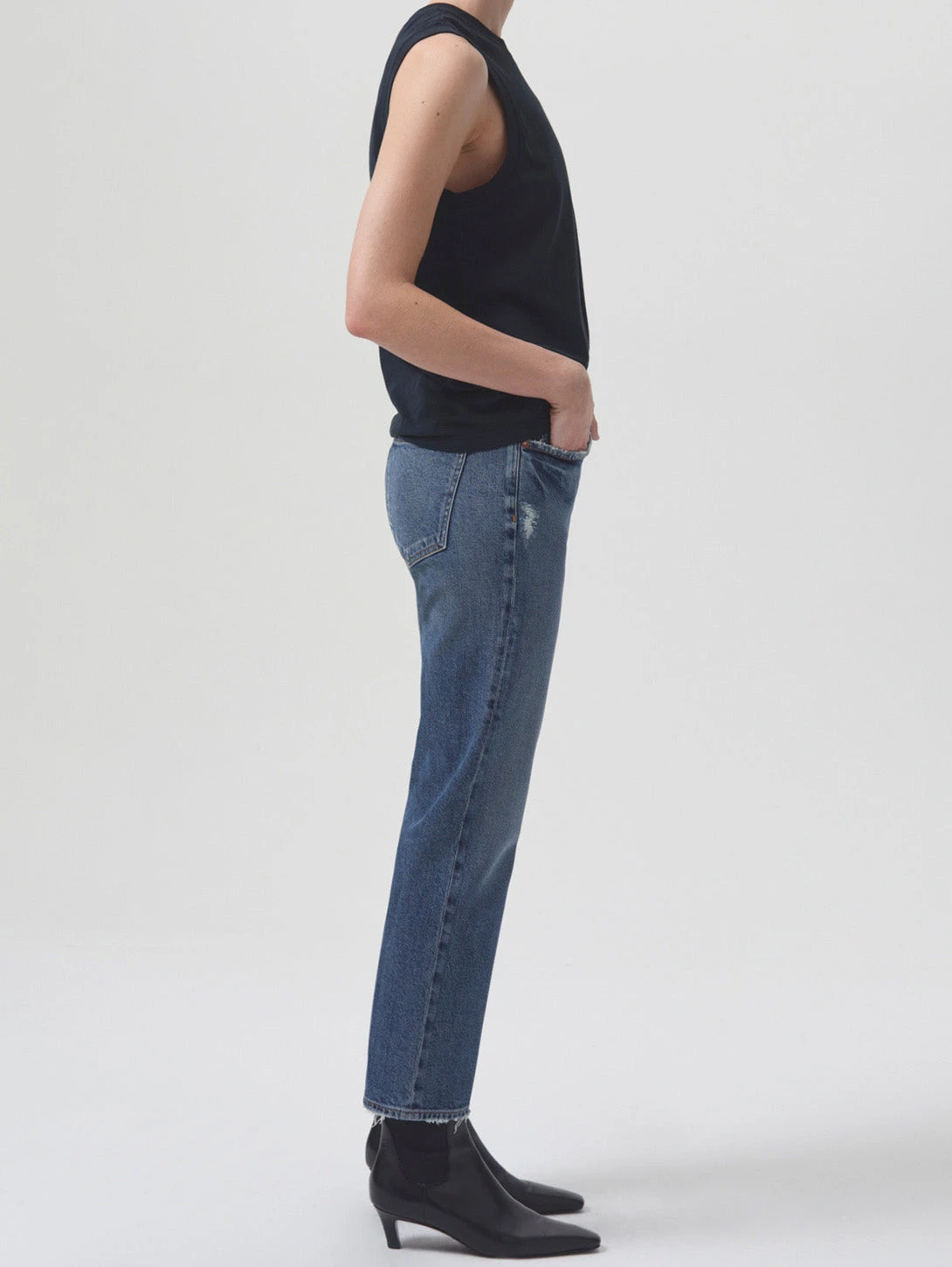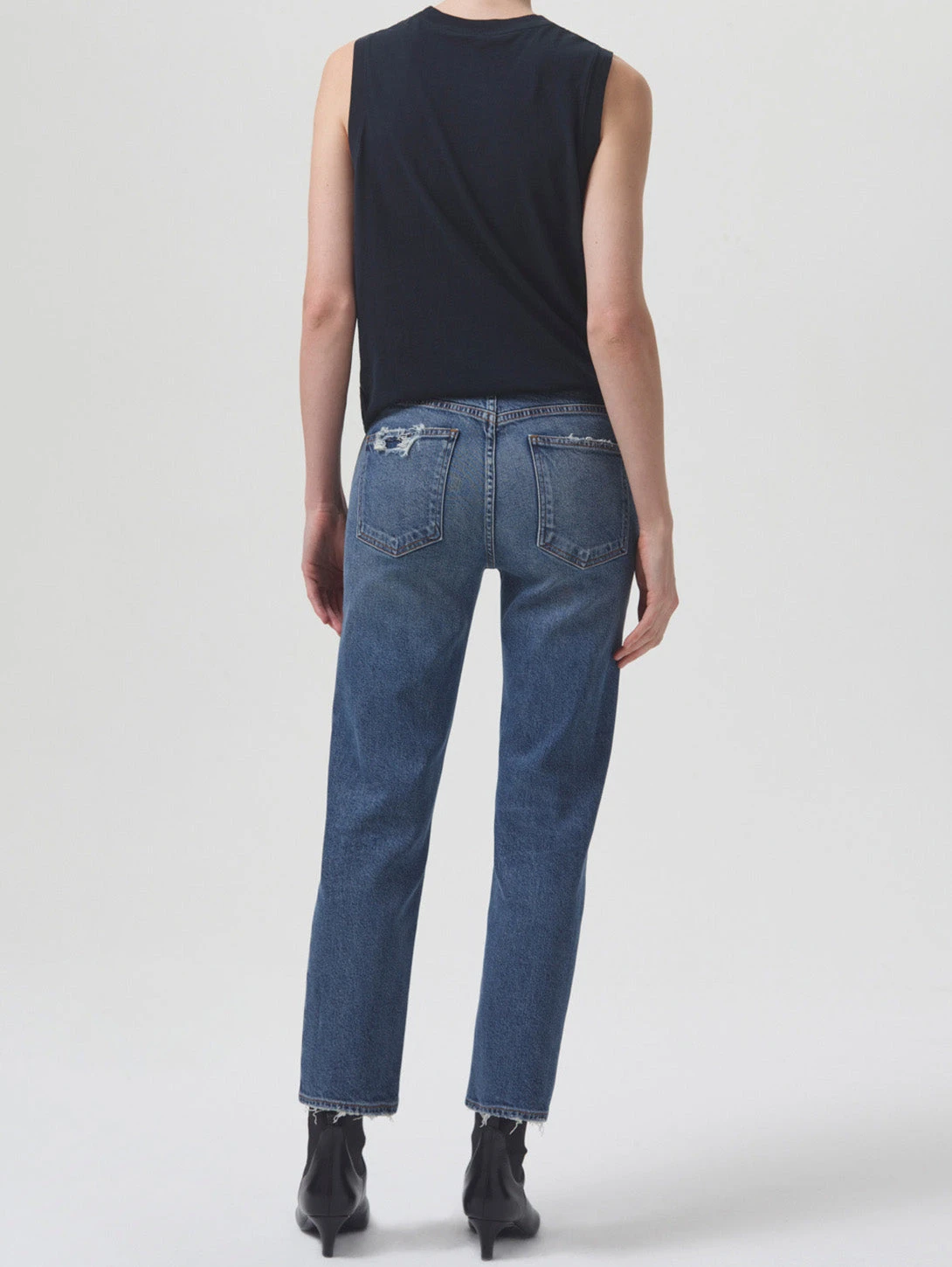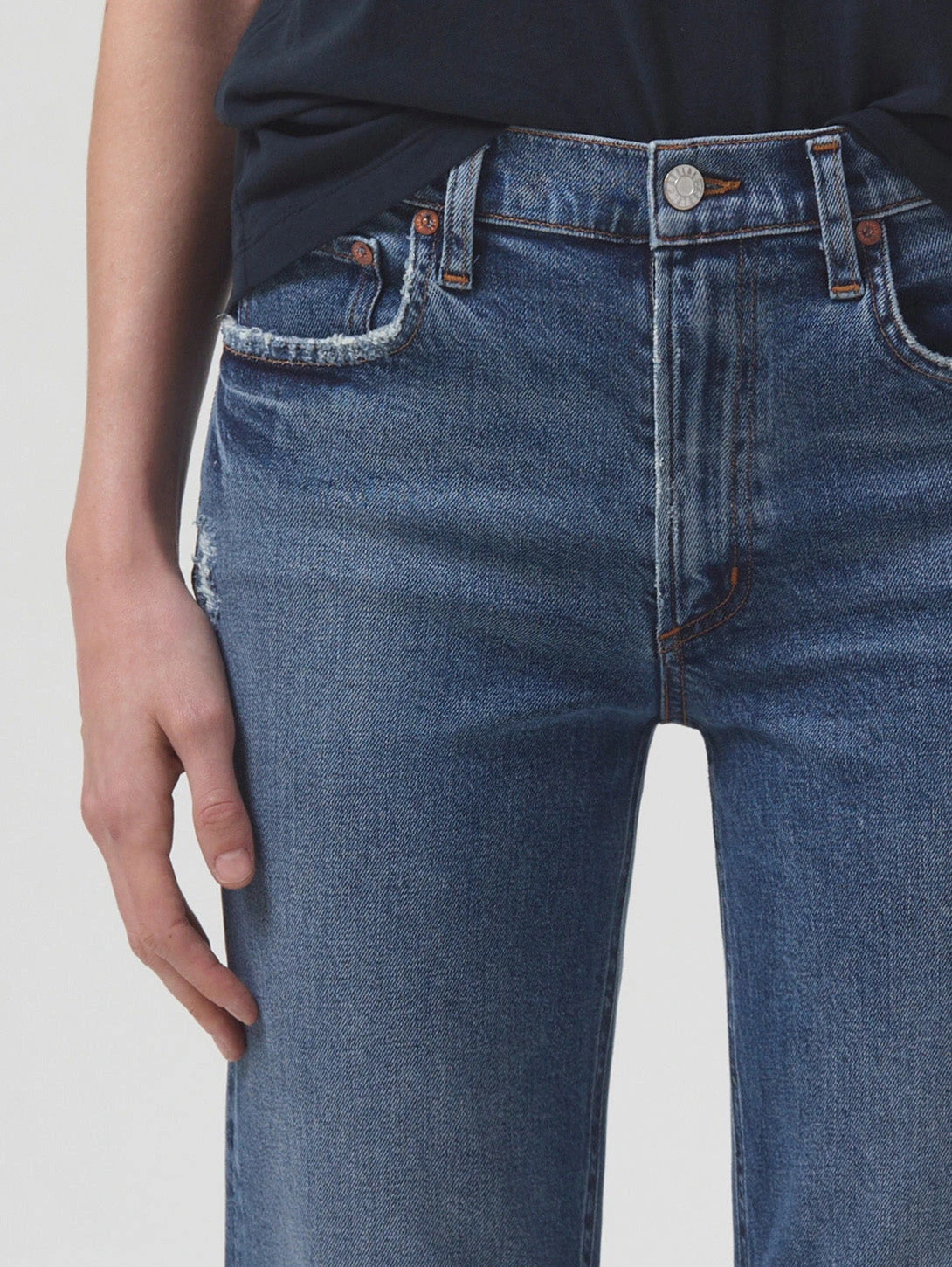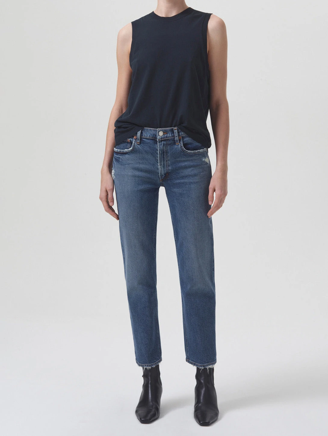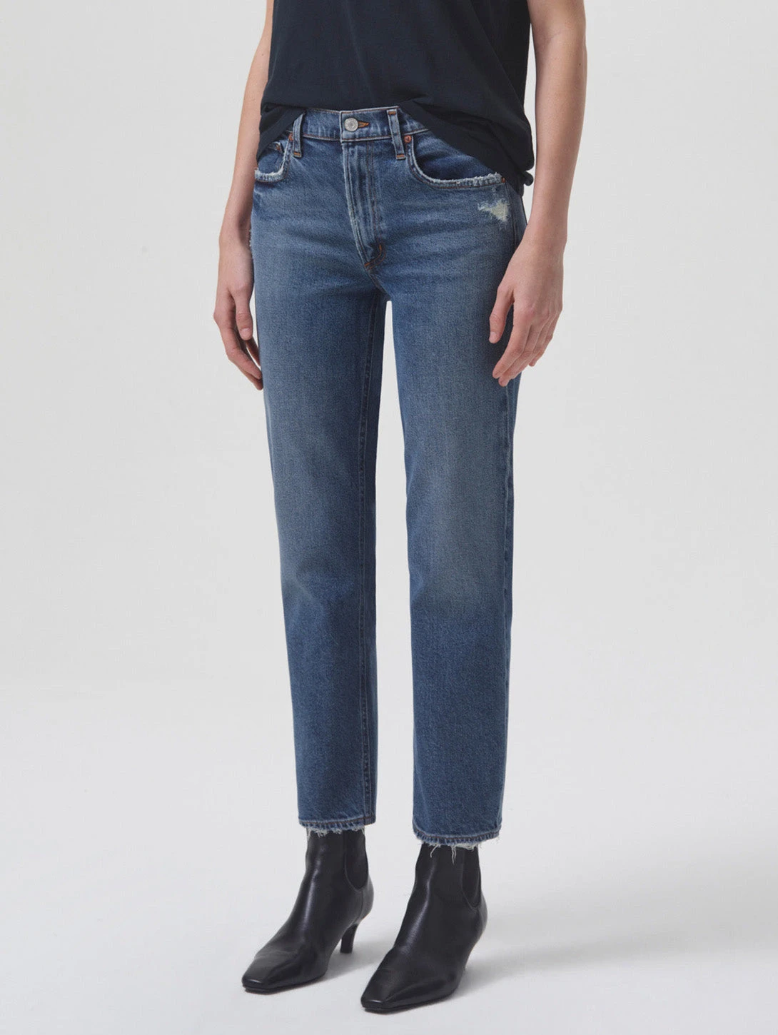 If you like AGOLDE’S iconic Riley – you will love the Kye. Crafted in their signature low-stretch denim and designed with a comfortable mid-rise waist and a straight-leg silhouette that hits just above the ankle – makes this new style the perfect everyday jean.Â