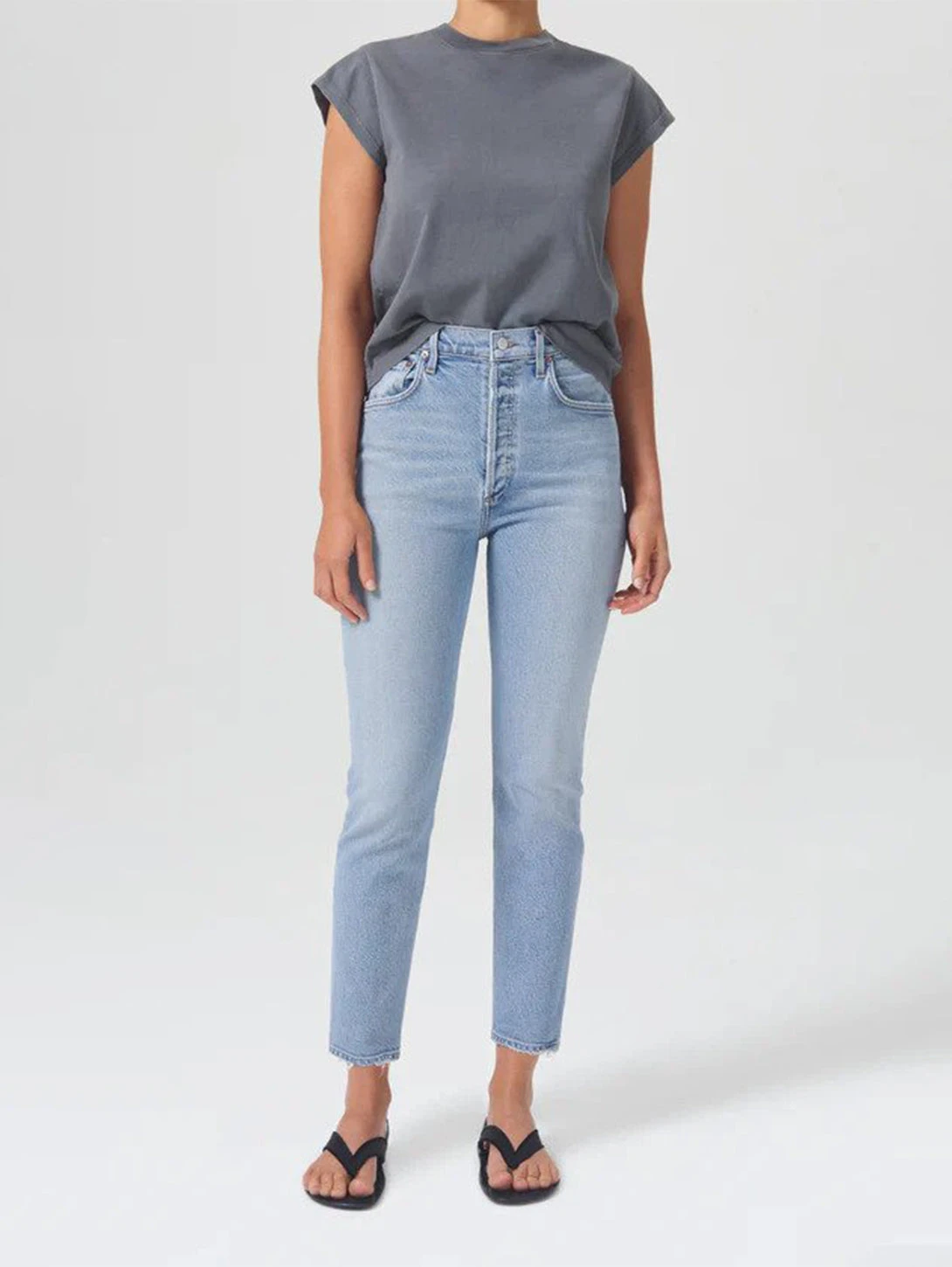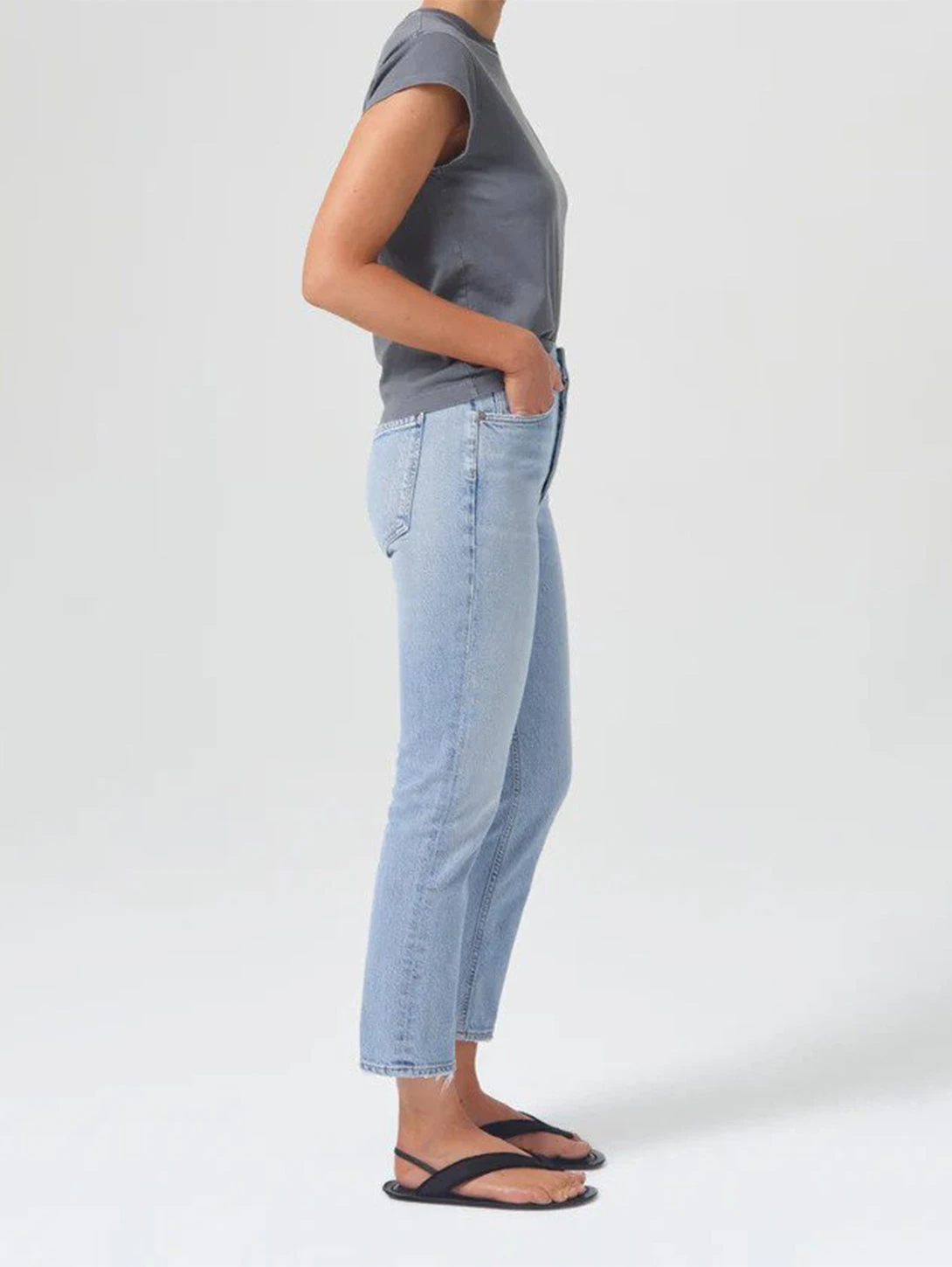Riley is a signature slim straight leg. With a better-than-vintage aesthetic, the Riley is an iconic brand favourite. The flattering high-rise and straight leg fit close to the body for a universally loved look. Available in stretch and non-stretch denim.