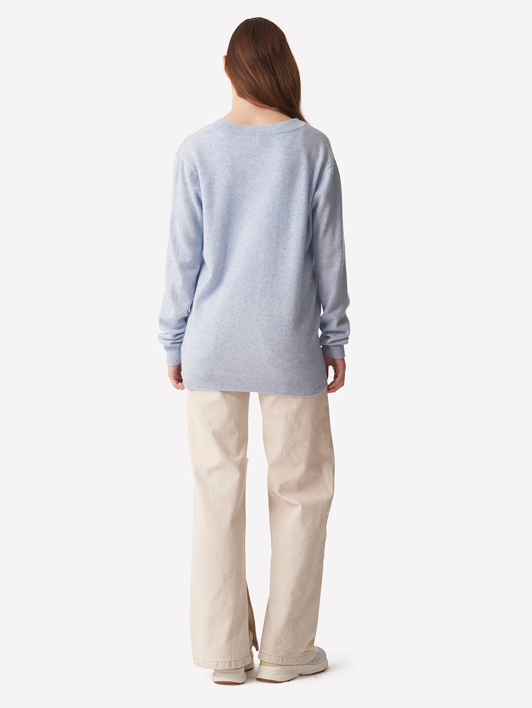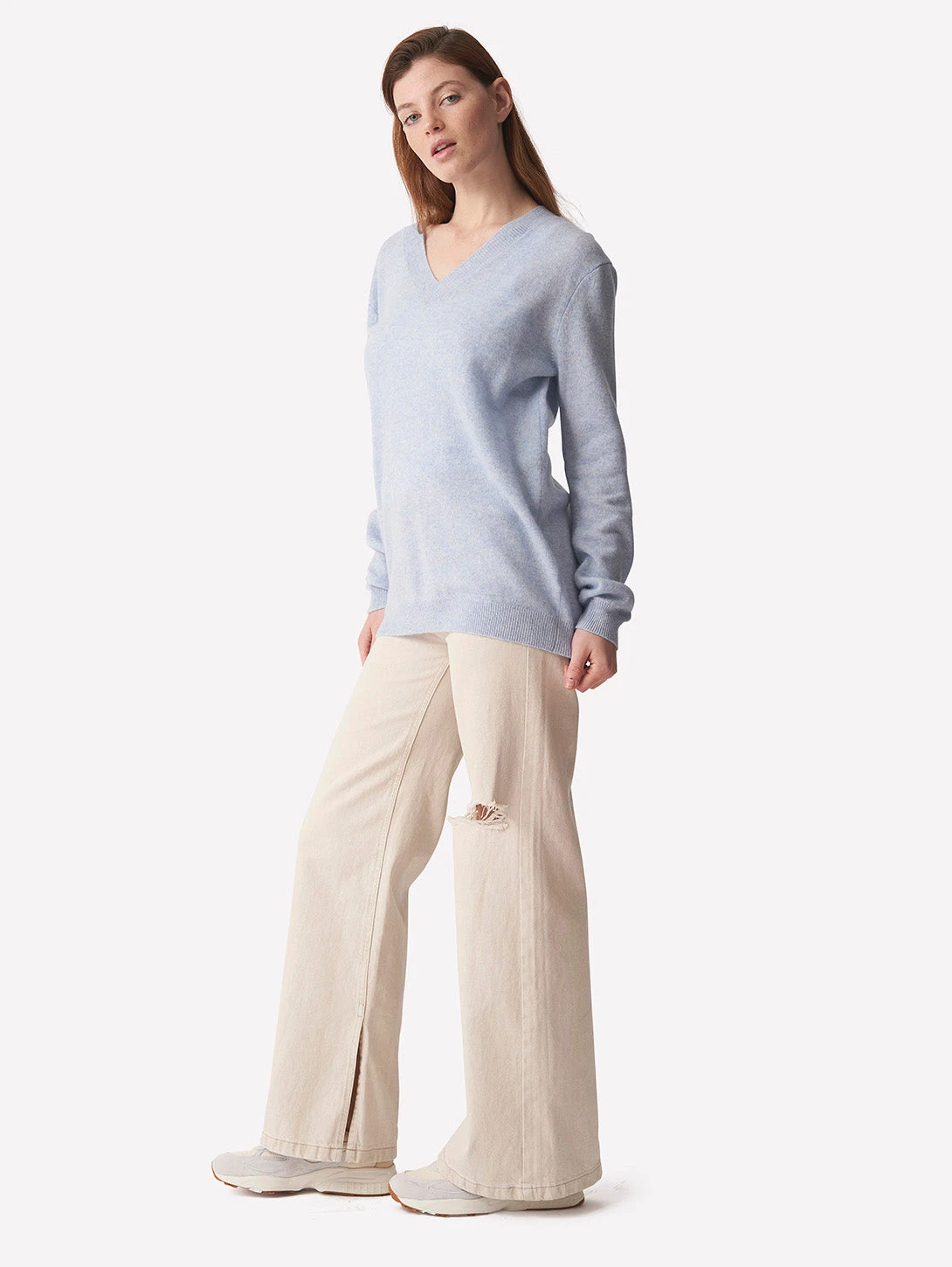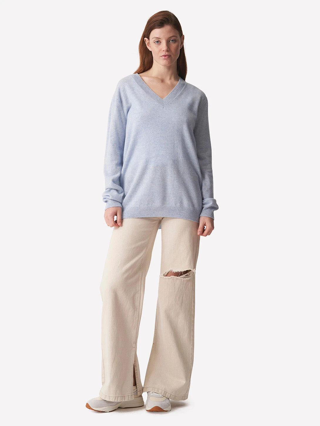The Boyfriend v-neck is crafted of 100% ethically sourced cashmere. This easy oversized sweater feels like a big hug, A set-in sleeve and a v-neck make it easy to be worn with anything.