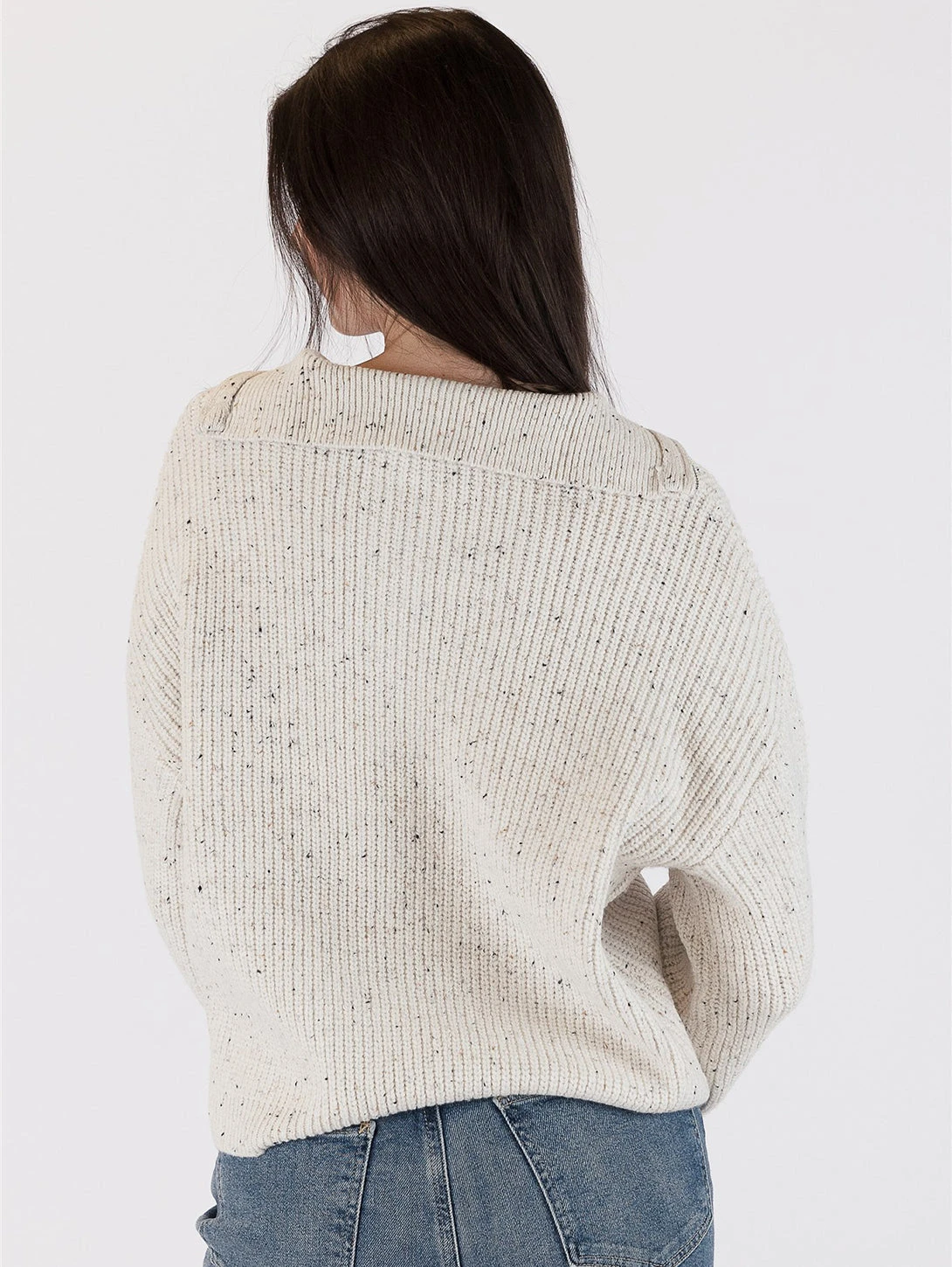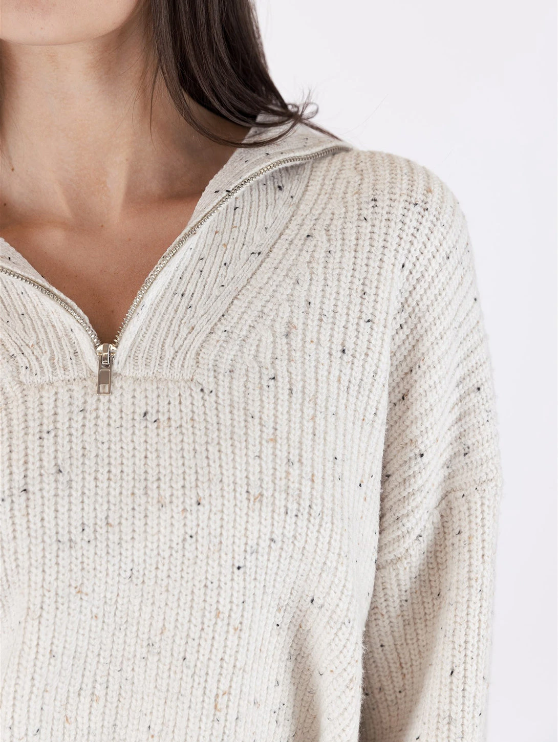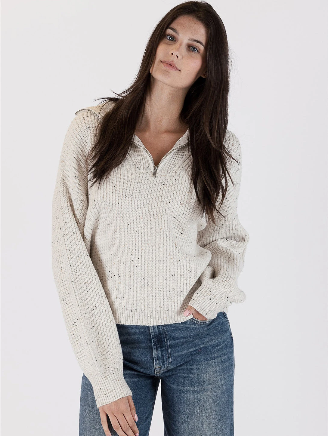 This fleck ribbed 3/4 zip sweater, a versatile wardrobe essential that effortlessly pairs well with anything. Crafted from high-quality ribbed fabric, this sweater offers a comfortable and cozy feel. The fleck detail adds a touch of texture and visual interest, making it a standout piece. The 3/4 zip design allows for easy layering and adds a modern touch to the classic sweater silhouette.