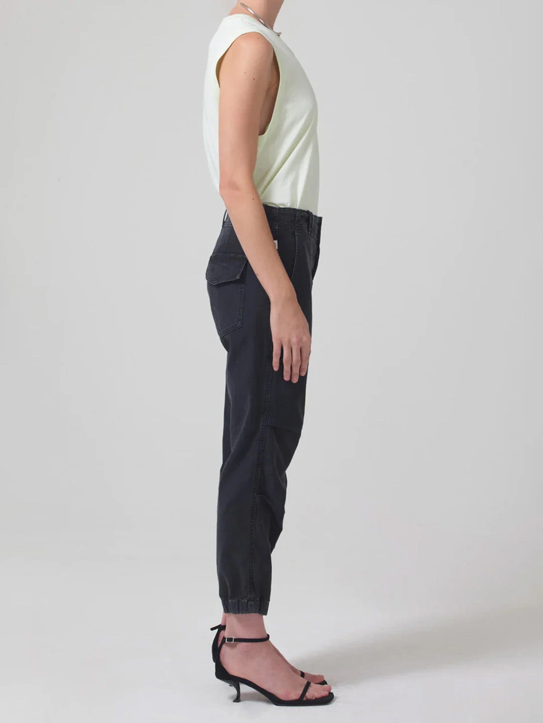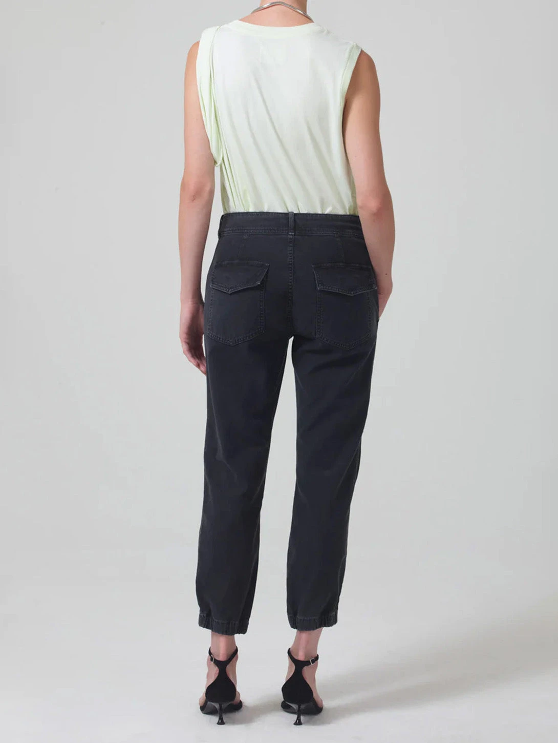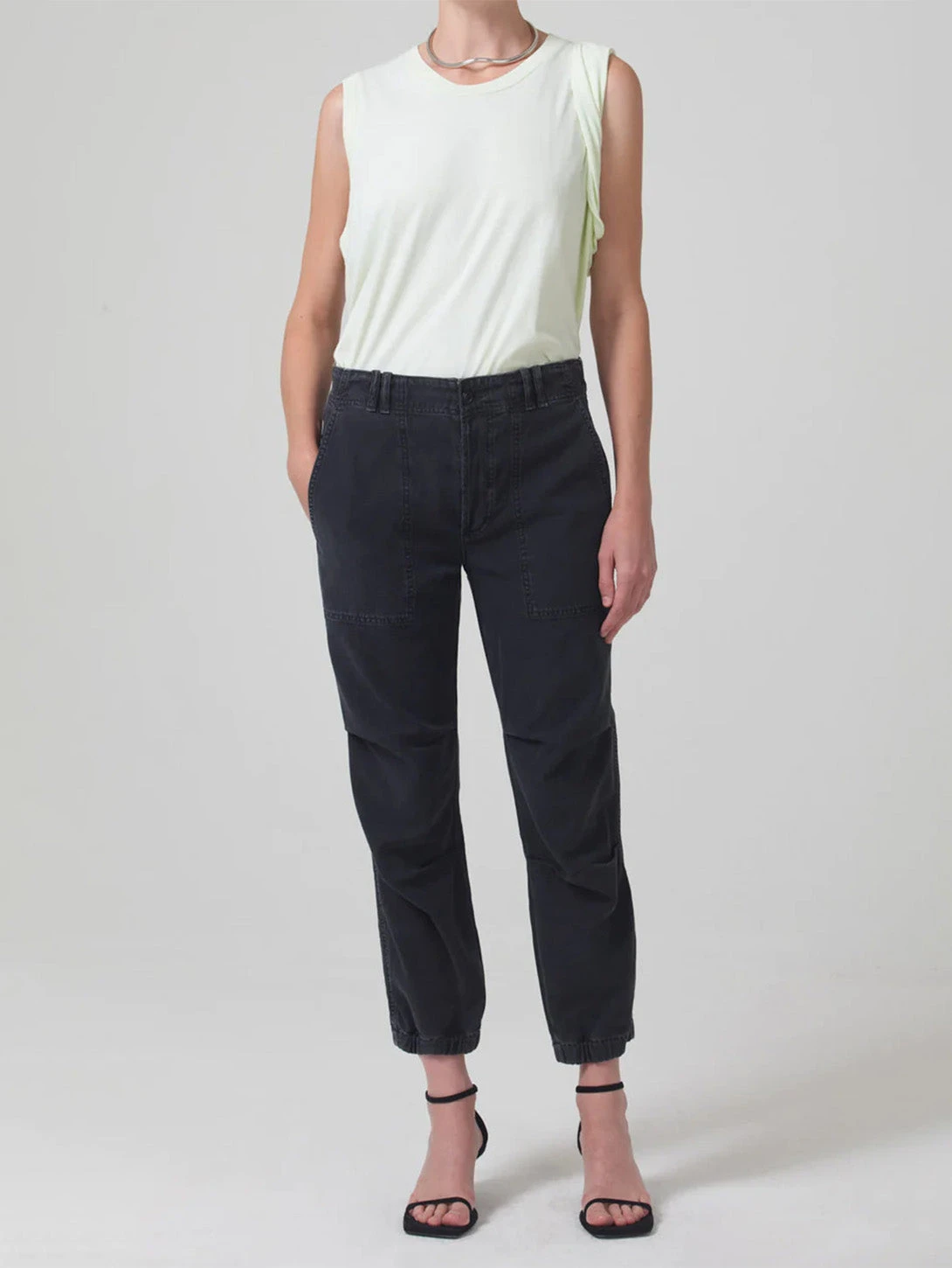 An off-duty essential. The Agni Trouser is designed with utility-inspired fold details through the leg. This mid-rise fit offers a relaxed feel and tapers to an elasticated cuff.