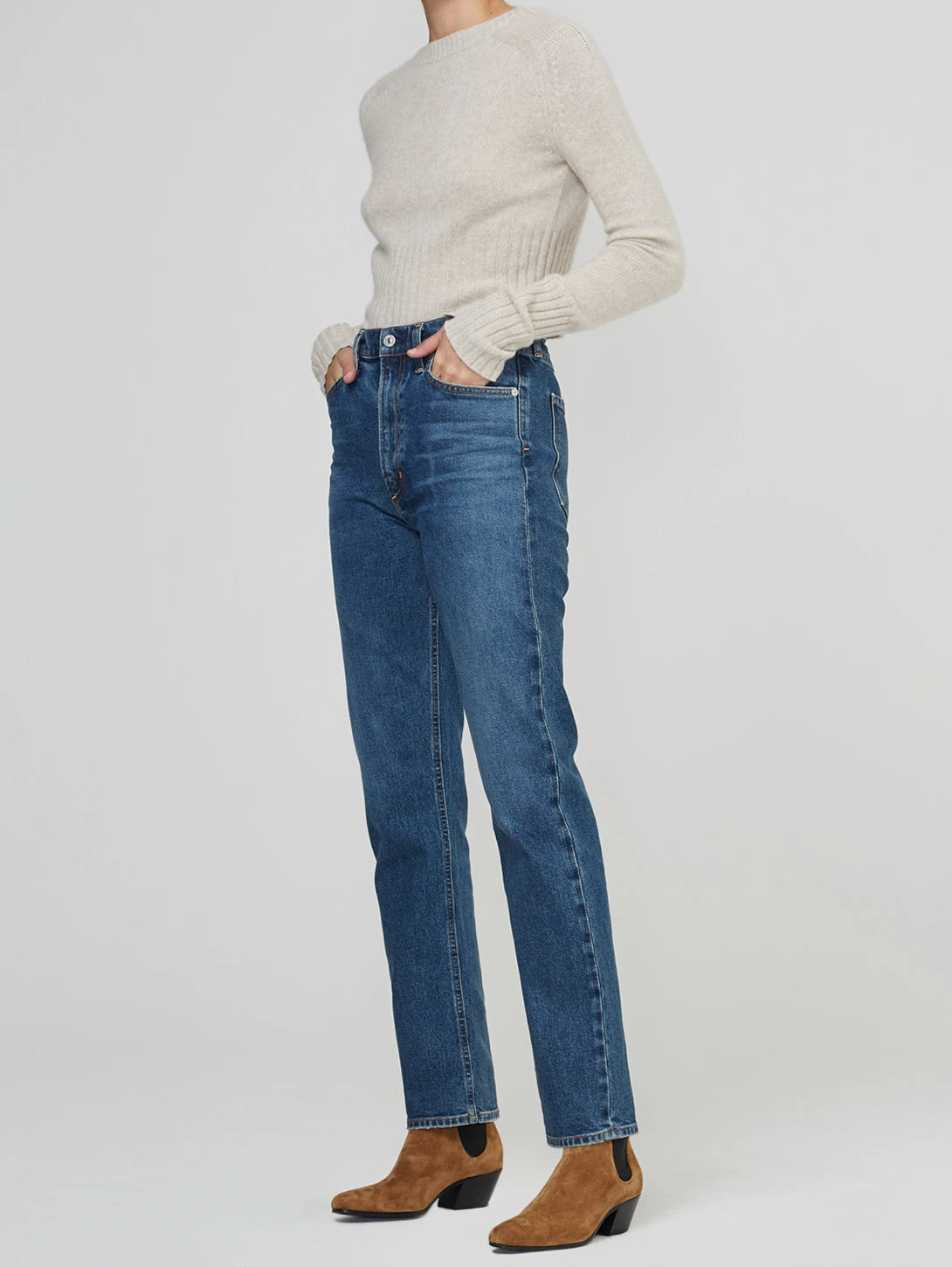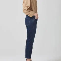 Daphne is designed to fit high on the waist with ease through the hip and a full-length straight leg. It features a classic 5 pocket styling with a zip fly, comfort stretch and a vintage dark indigo wash. Perfect for pairing with a heel or a casual sneaker. Your pick!