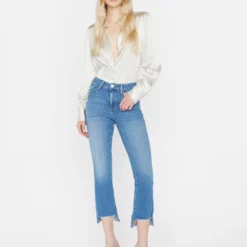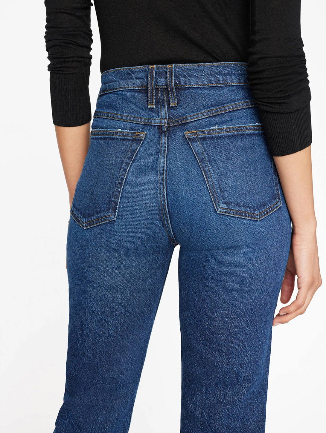 This love letter to ‘90s denim features a high-rise that nips in to accentuate the waist and give your backside a dreamy curved silhouette. On-trend, incredibly flattering, and destined for favourite-jean status, this straight-leg fit is crafted from medium-blue comfort stretch denim for ease and allure.