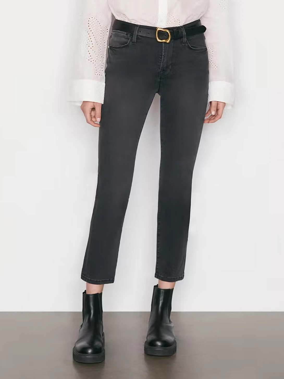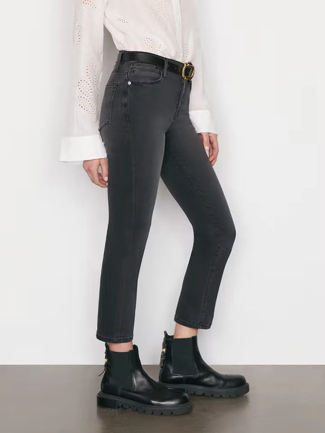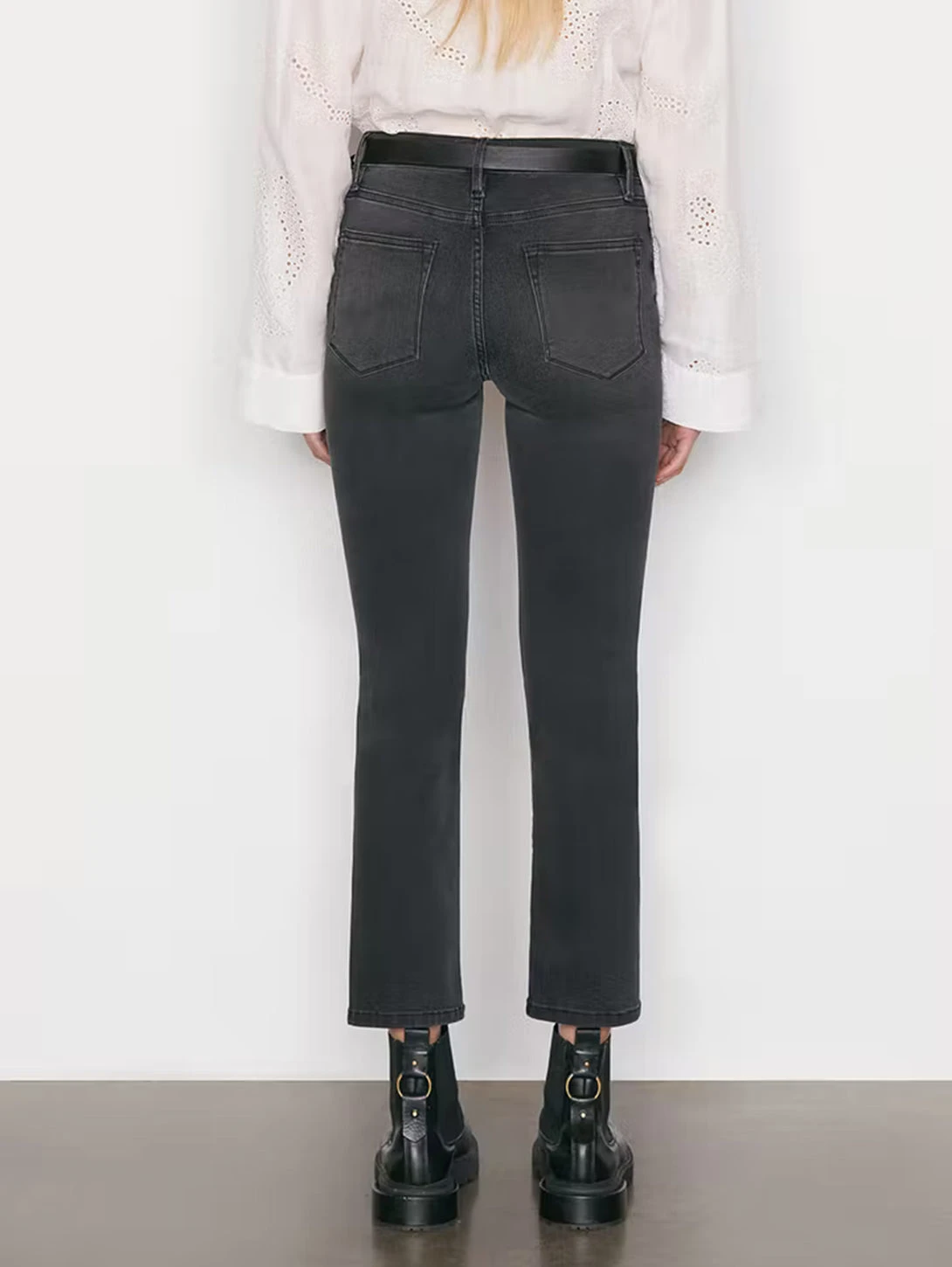 Mardel is a tailored straight-leg jean with a flattering nip-in at the knees. Featuring a high-rise waist and a streamlined fit through the hip and thigh. Crafted from comfortable super-stretch fabric, this faded black fit has a finished hem and a lived-in look perfect for everyday outfitting.