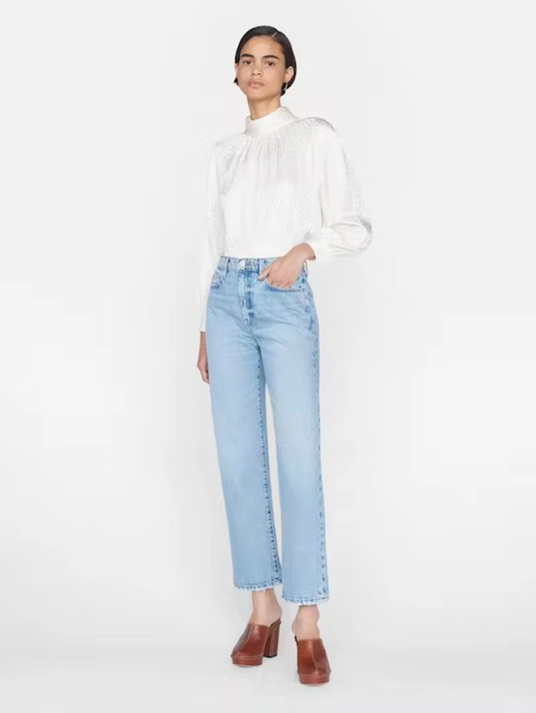 Le Jane in a flattering ankle length is the best-selling fit from FRAME. This ultra-high-rise jean is fitted through the hips, slightly relaxed at the thigh, and straight through the legs. Crafted from rigid sustainable denim that breaks into a beautiful lived-in feel.