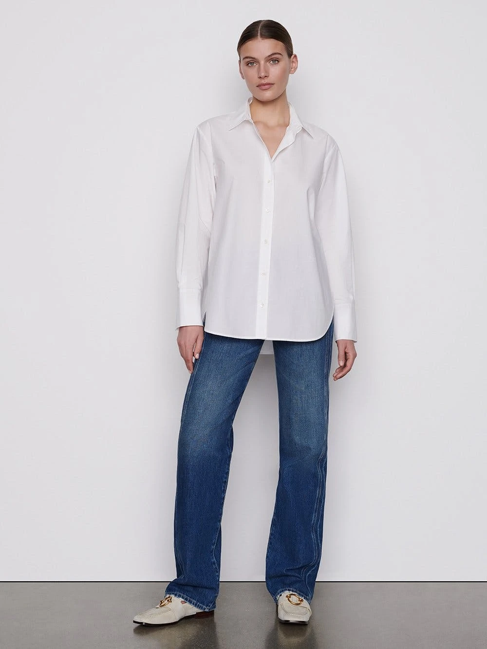 This button-down shirt is smart yet relaxed in so-soft organic cotton. The oversize fit appears effortlessly polished, whether worn with slouchy jeans, leather bottoms, or utility trousers.