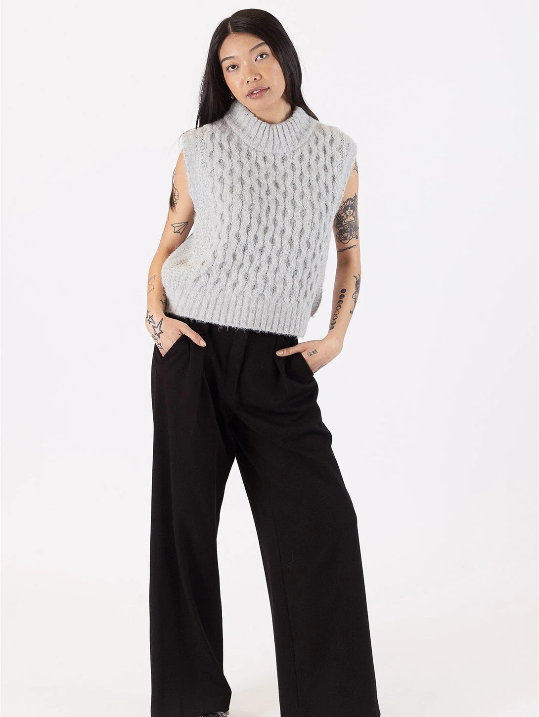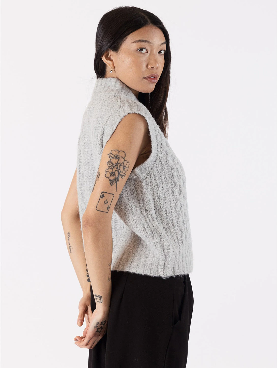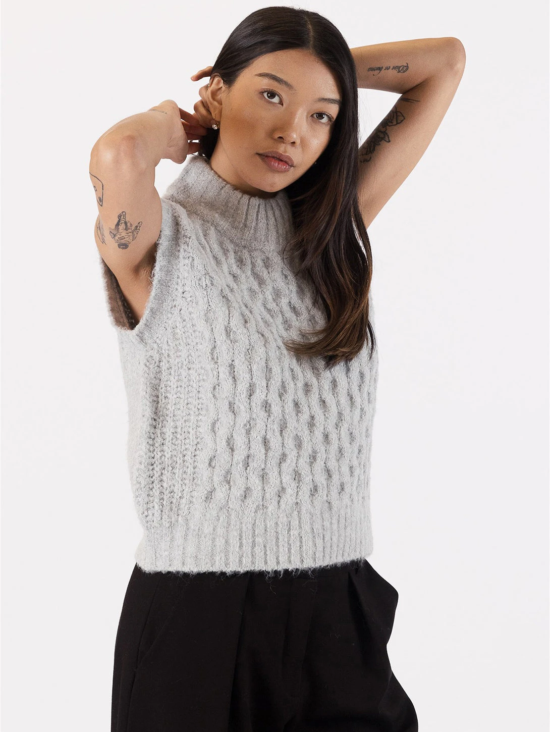 This piece is the perfect addition to your fall and winter wardrobe. This versatile and cozy vest is designed to keep you warm while adding a touch of style to any outfit. The intricate texture adds depth and dimension, giving the vest a luxurious and tactile feel. The chunky knit also provides excellent insulation, making it perfect for colder days.