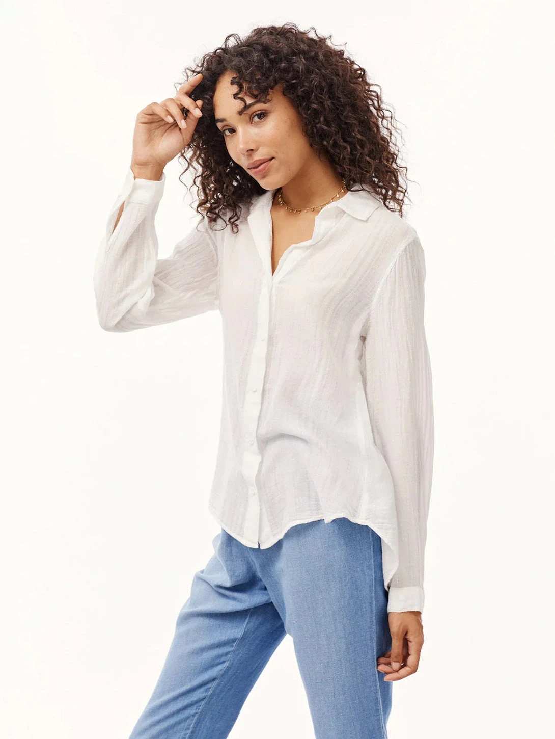 This button-down shirt is a classic style for the office or for casual wear, it features a collar and long sleeves that can be worn rolled up or down. Pair it with slacks and heels or jeans and sandals and you’re good to go! Made with luxuriously soft and eco-friendly TENCELâ„¢ lyocell.