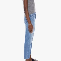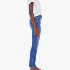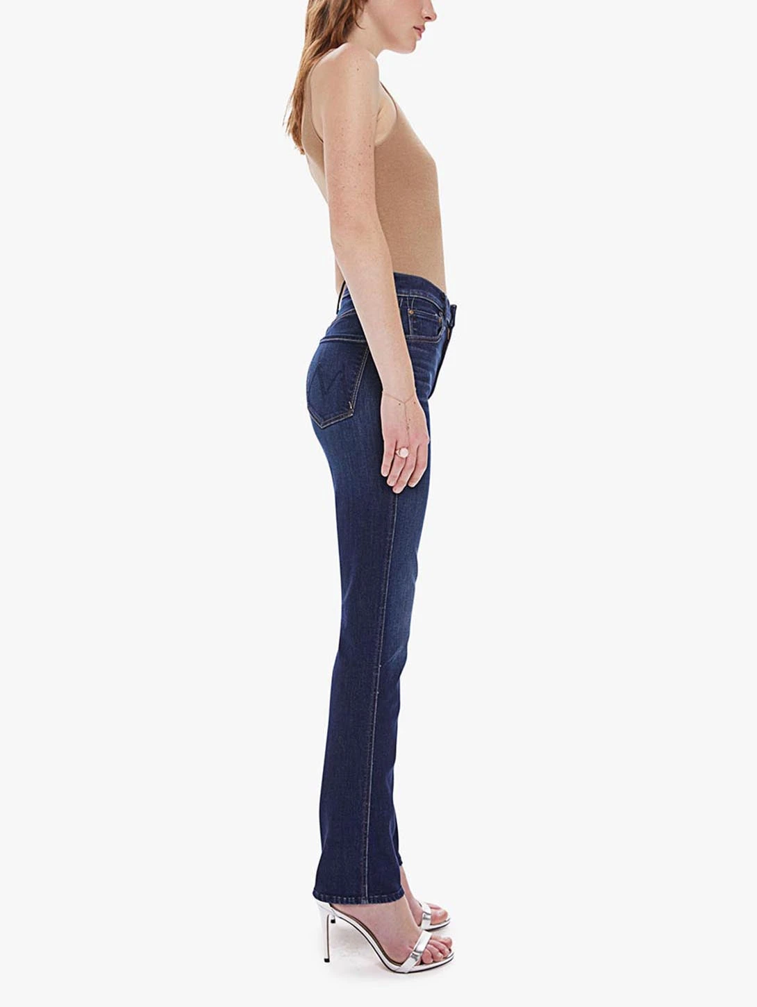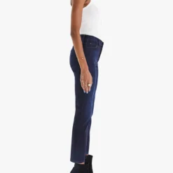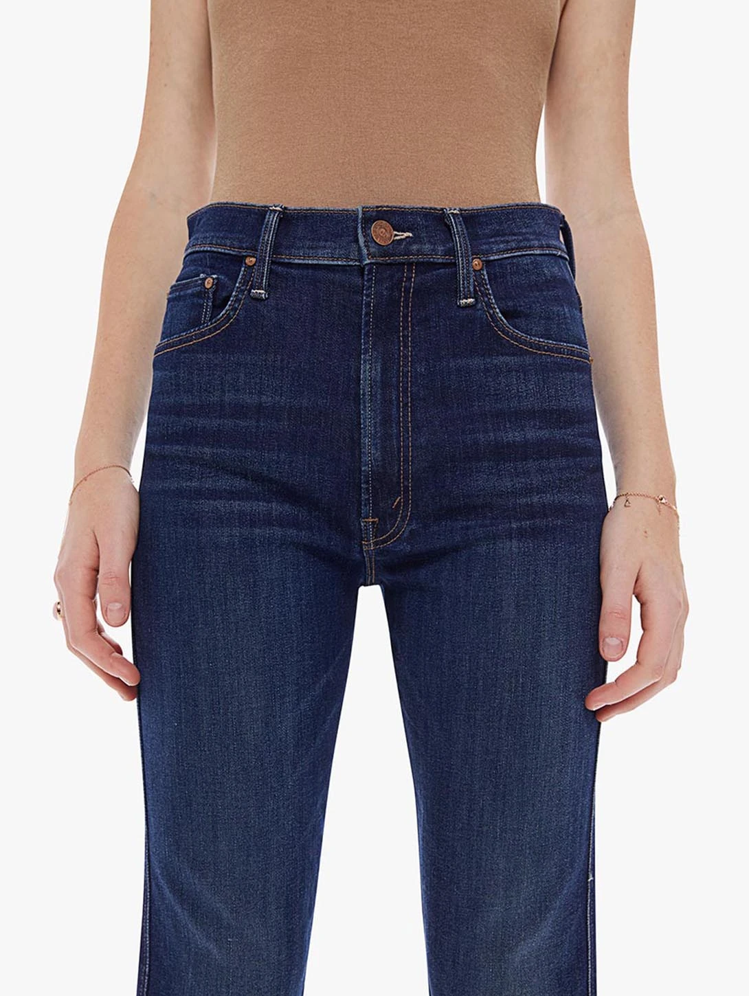 Out of your league. This perfect high-waisted straight leg has a 31-inch inseam and a clean hem. Cut from denim with a touch of stretch, Off Limits is a dark-blue wash with subtle fading and whiskering.