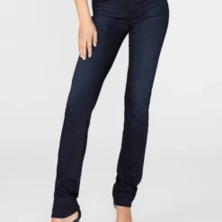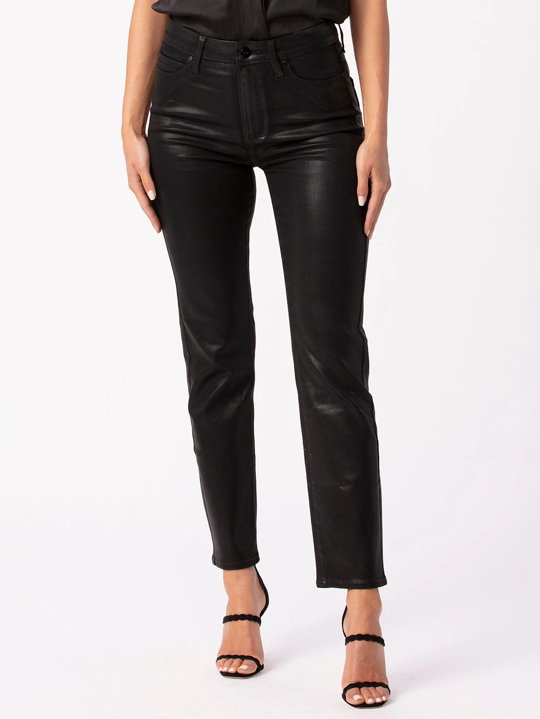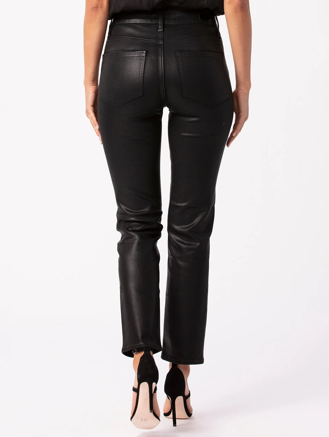 Featuring a high-rise, perfectly straight fit that is lean through the leg, this black-coated denim pair is finished with a raw hem and an inseam slit. Cut from a coated TRANSCEND denim for a leather-like look, this style is luxuriously soft and incredibly comfortable with plenty of stretch and recovery to give it a flawless fit from morning to moonlight.Â