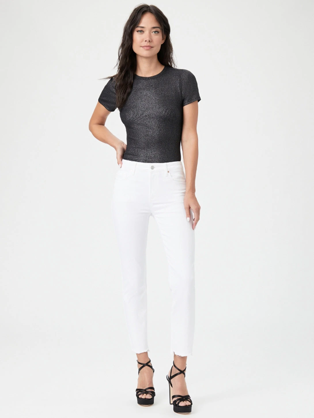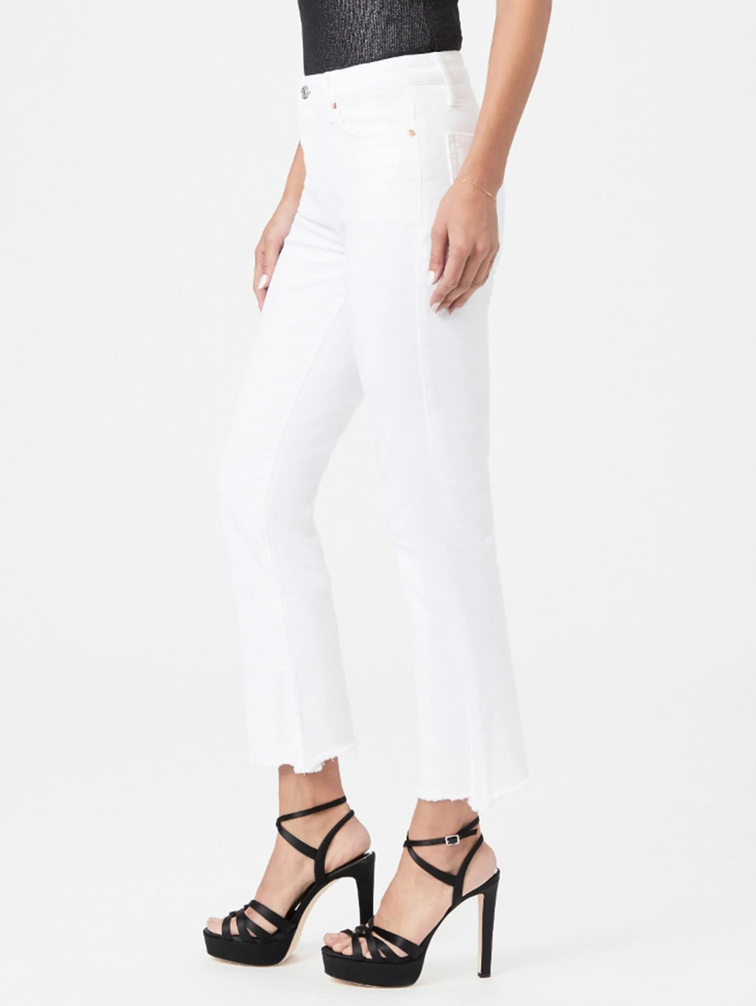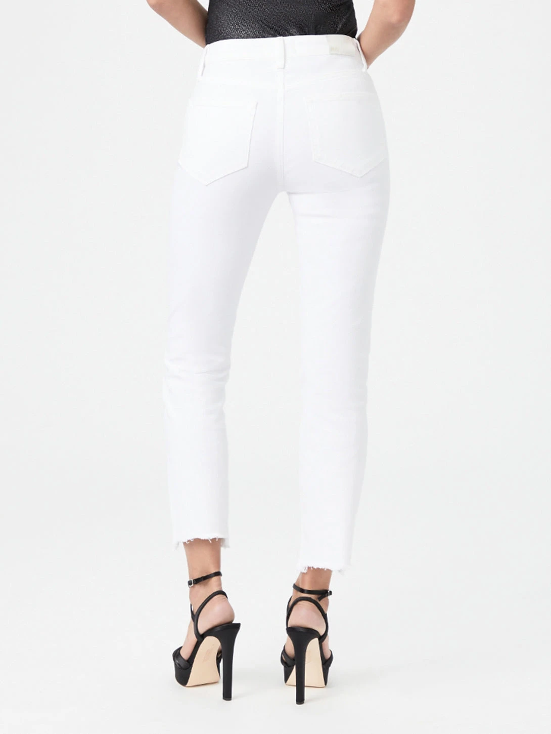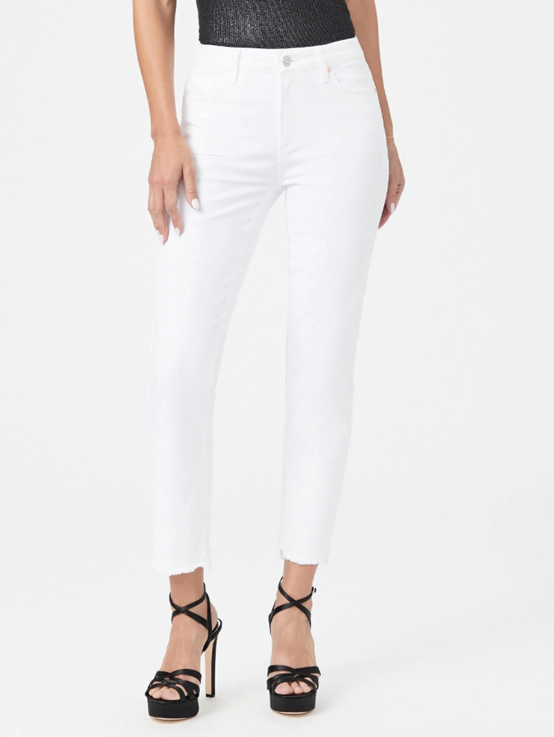 Cindy is a high-rise, perfectly straight jeans that is lean through the leg and finishes at the ankle with a raw, destructed hem. Cut from our super soft white denim with a hint of stretch for comfort, this wardrobe must-have will be your new favourite year-round staple.Â