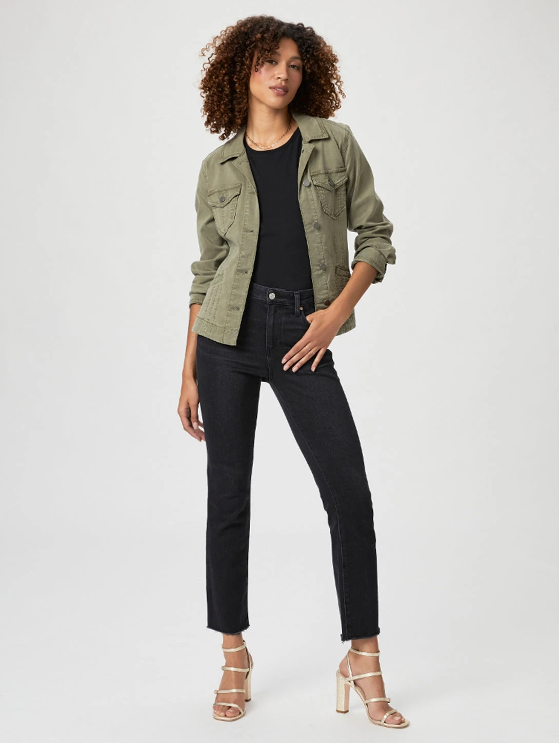 An effortlessly cool and super flattering high-rise straight leg that belongs in every wardrobe. This pair is crafted in PAIGE Vintage denim and comes in a rich black wash with a raw hem. PAIGE Vintage takes all of the work out of breaking in your favourite pair of vintage jeans. We’ve combined the comfort of stretch with everything you love about authentic vintage denim to create super soft jeans that feel perfectly lived in from the very first wear.