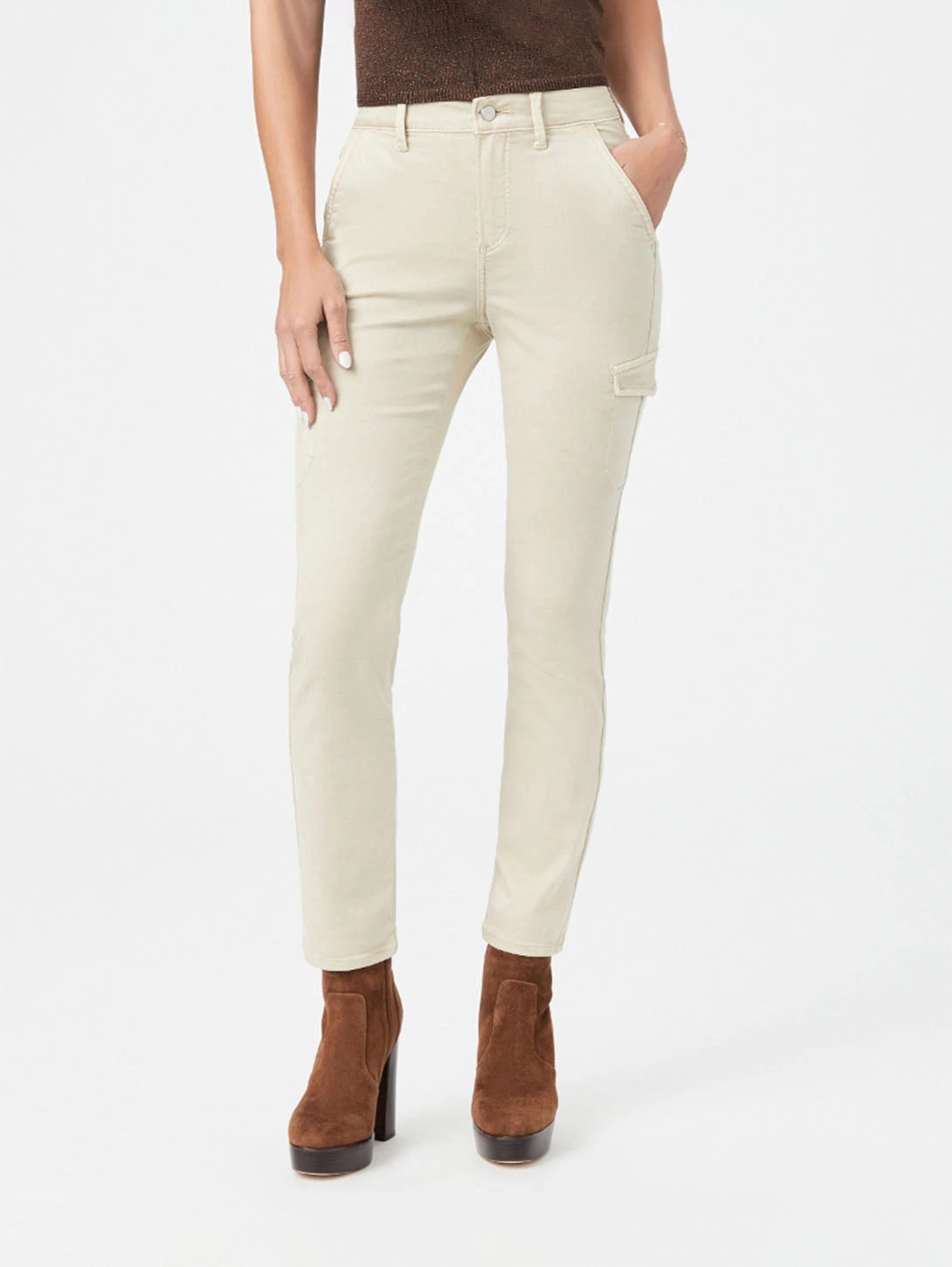 Jolie, our new feminine take on the utilitarian trend. This slim high-rise style comes in a neutral sand hue and features front trouser pockets and sleek cargo pockets. Finishing at the ankle, Jolie pairs perfectly with elevated sneakers or your favourite heels.