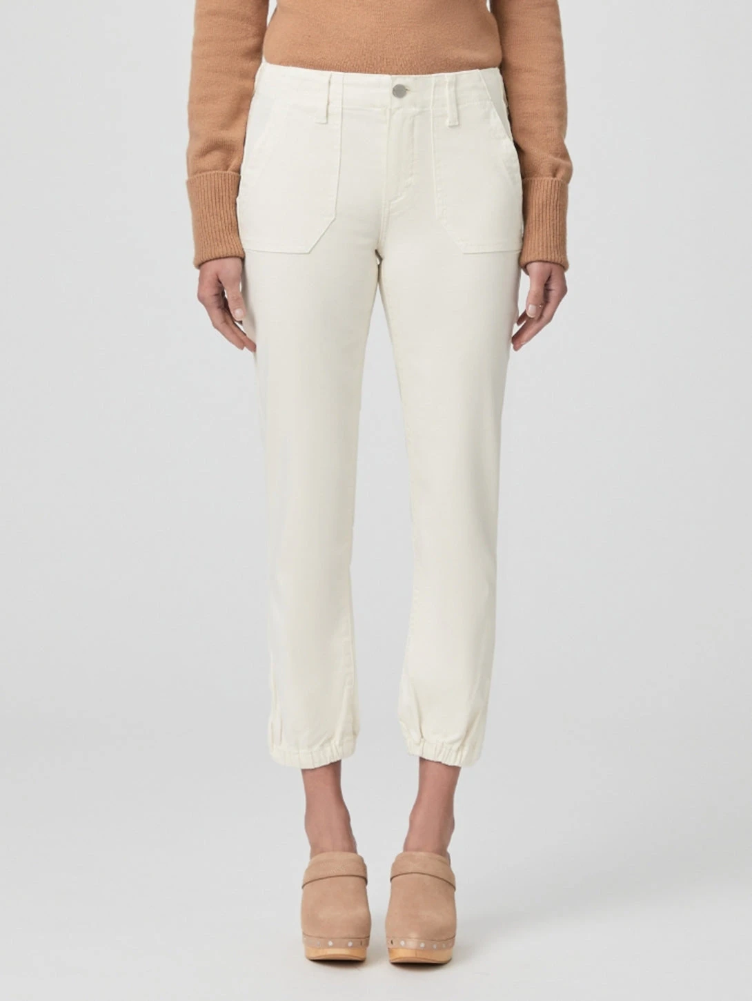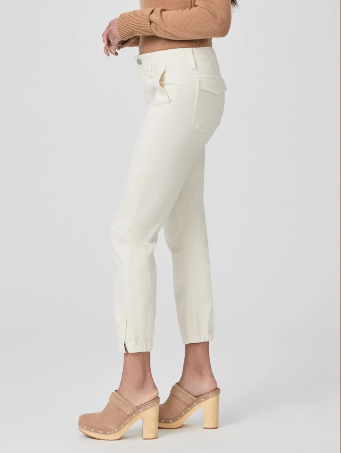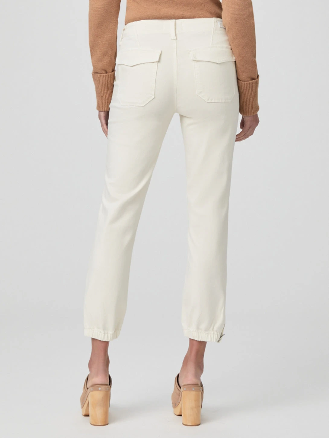 Take a break from your everyday denim with the Mayslie Jogger in a gorgeous ivory hue. Mayslie is your go-to weekend pant because it is super comfortable but still looks polished and put together. This chic style was inspired by the utility trend on the runway and PAIGE put a feminine twist on it with a streamlined silhouette and zipper details.