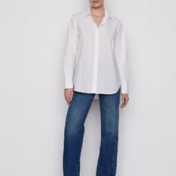 Timeless. Authentic. Iconic. One of the building blocks of a perfect wardrobe. A true wardrobe staple, this poplin button down Icon is a classic, perfected. Featuring banker stripes and a chevron front pocket detail for added dimension. Subtle gathering around the cuffs gives this traditionally masculine shirt a subtly feminine touch. Pairs perfectly under a sweater-vest or military jacket. Crafted from 100% cotton with a relaxed fit.