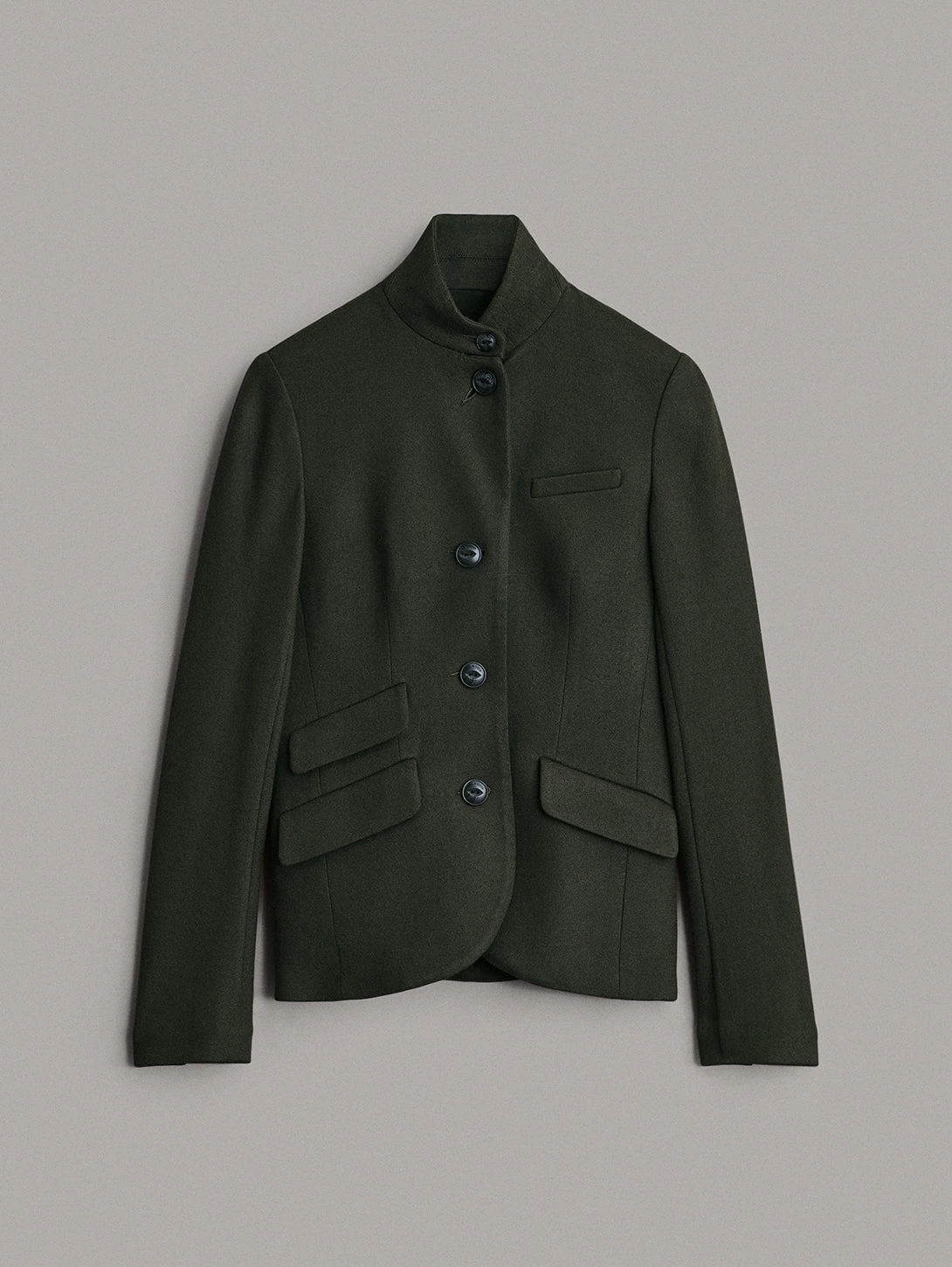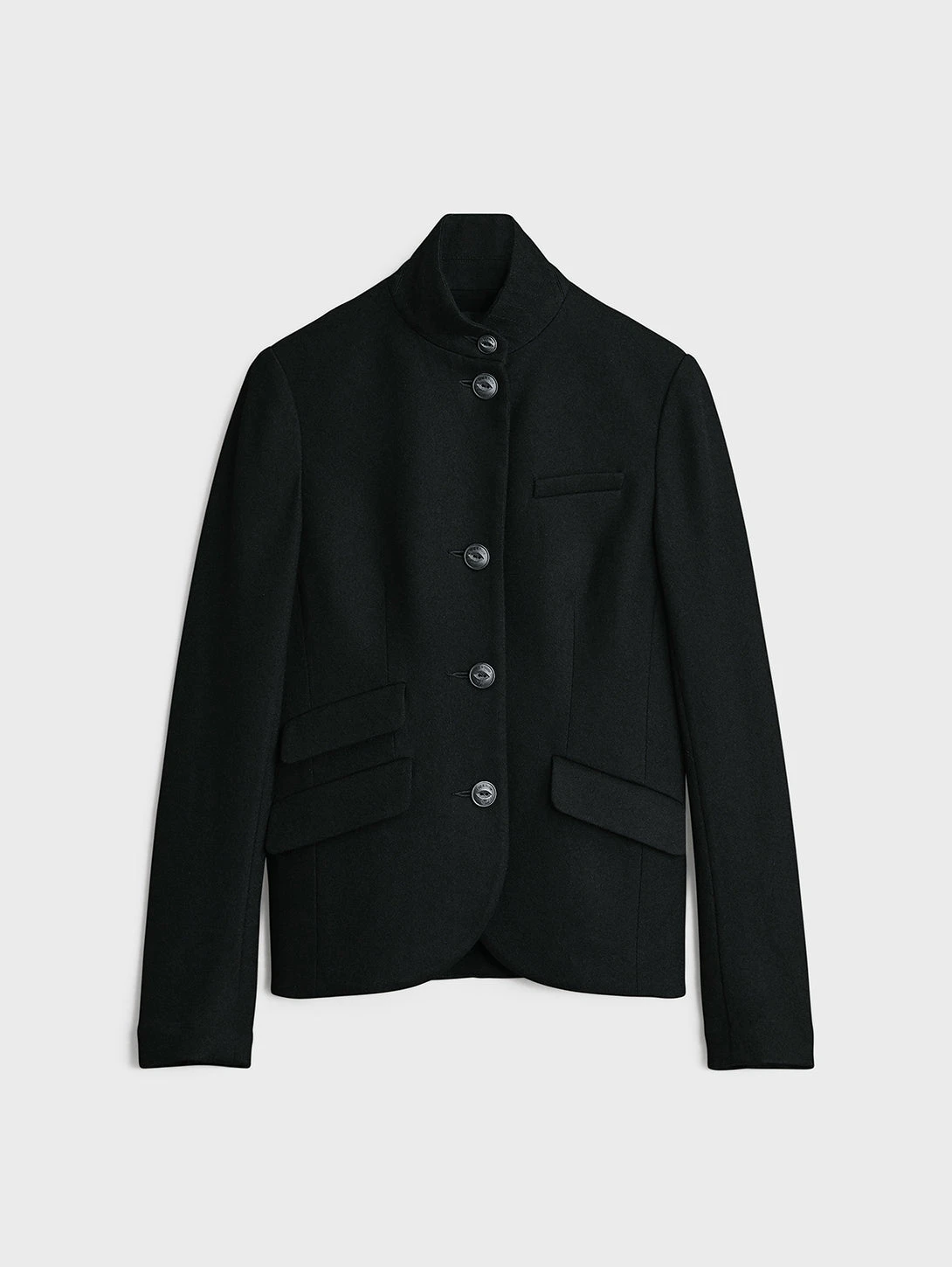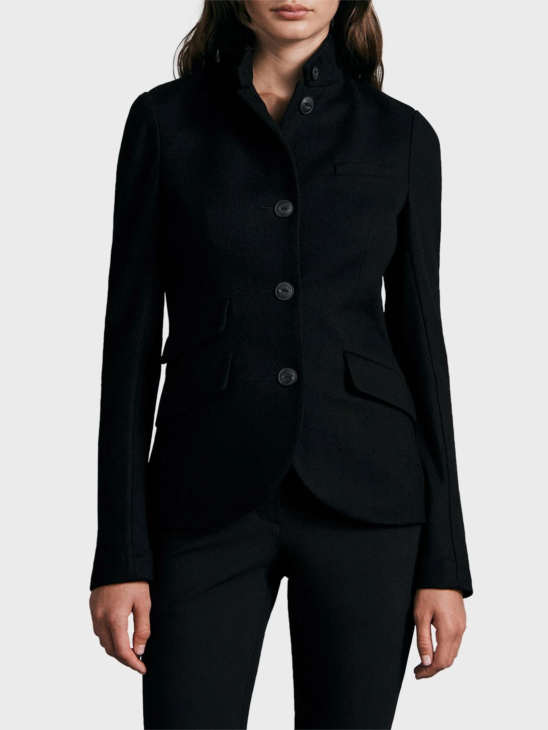 This Slade Wool Blazer is tailored for timeless sophistication. Crafted from luxurious wool suiting, it features a stand-up collar and a single-button center front closure. With its unlined construction and long sleeves, it’s a perfect blend of style and versatility.