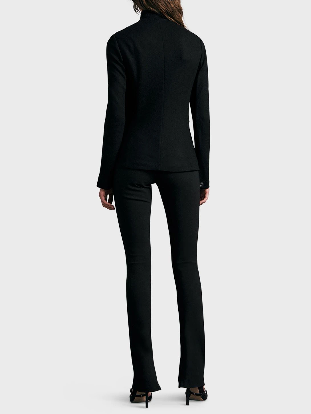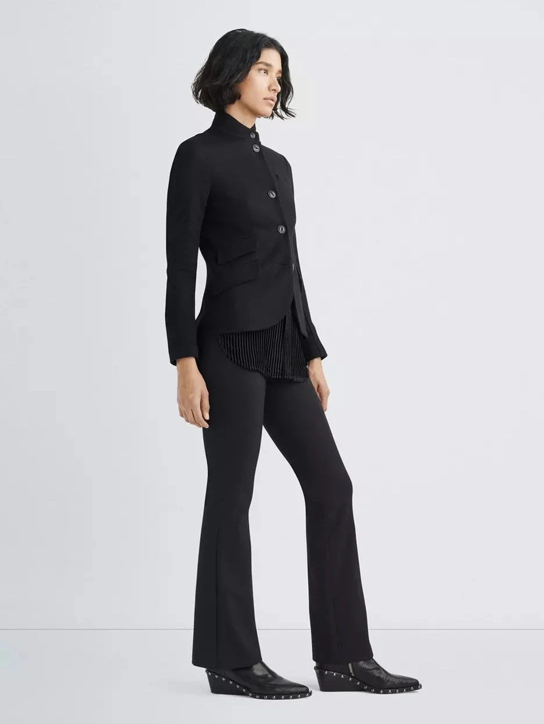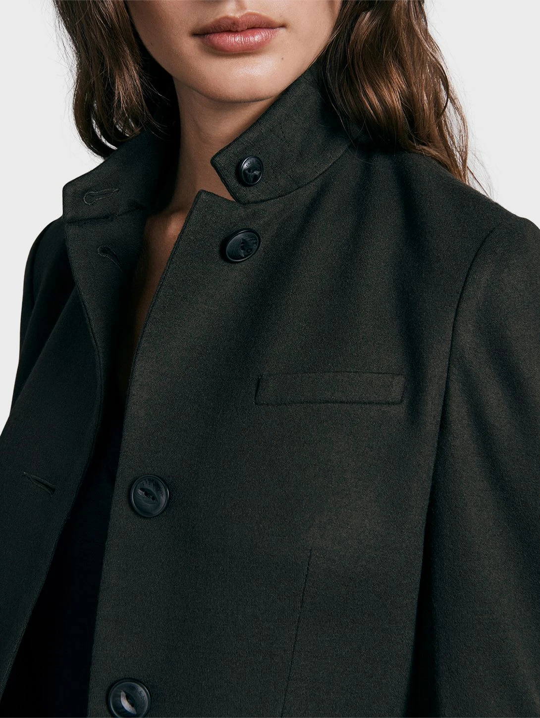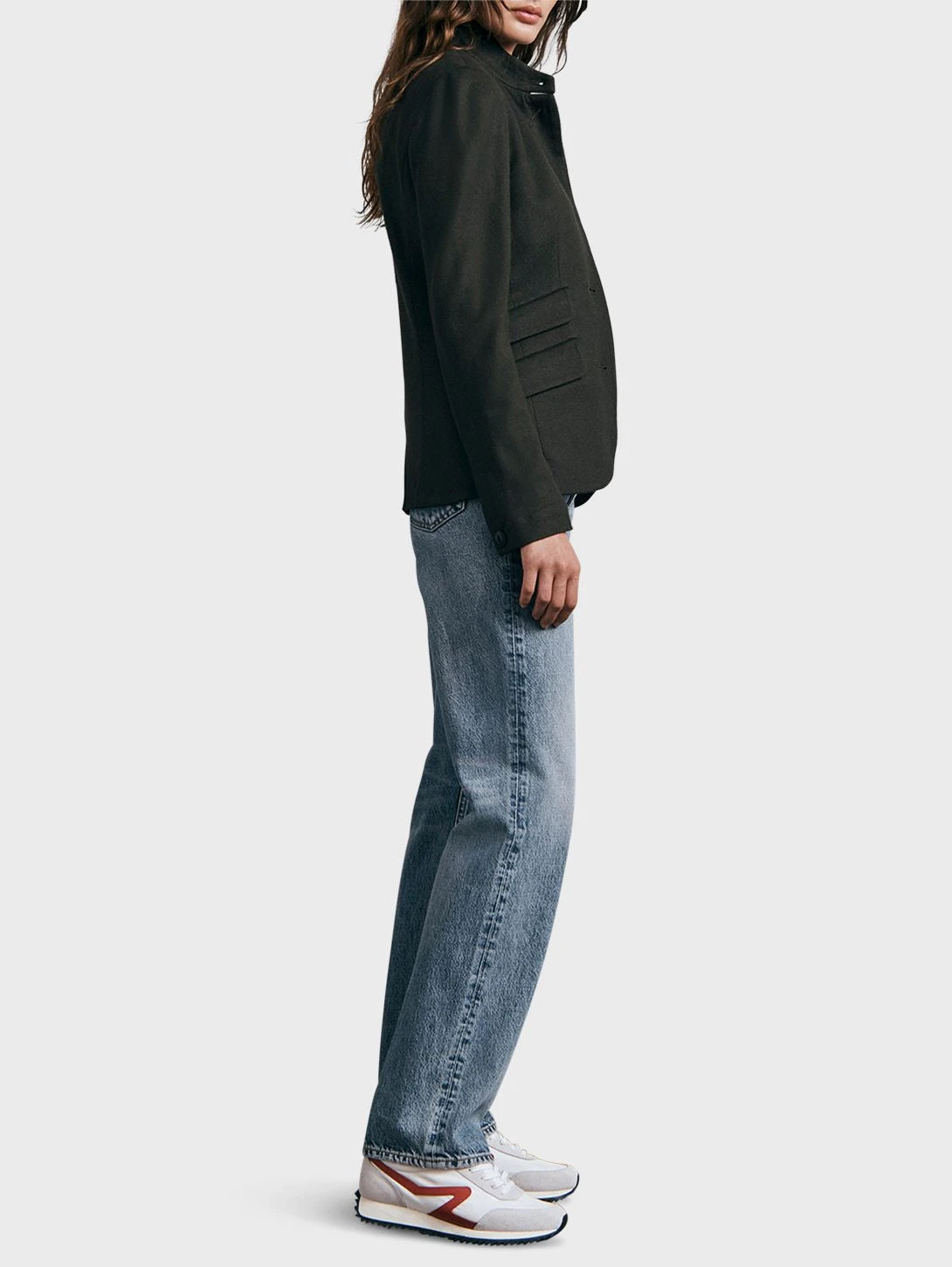 This Slade Wool Blazer is tailored for timeless sophistication. Crafted from luxurious wool suiting, it features a stand-up collar and a single-button center front closure. With its unlined construction and long sleeves, it’s a perfect blend of style and versatility.