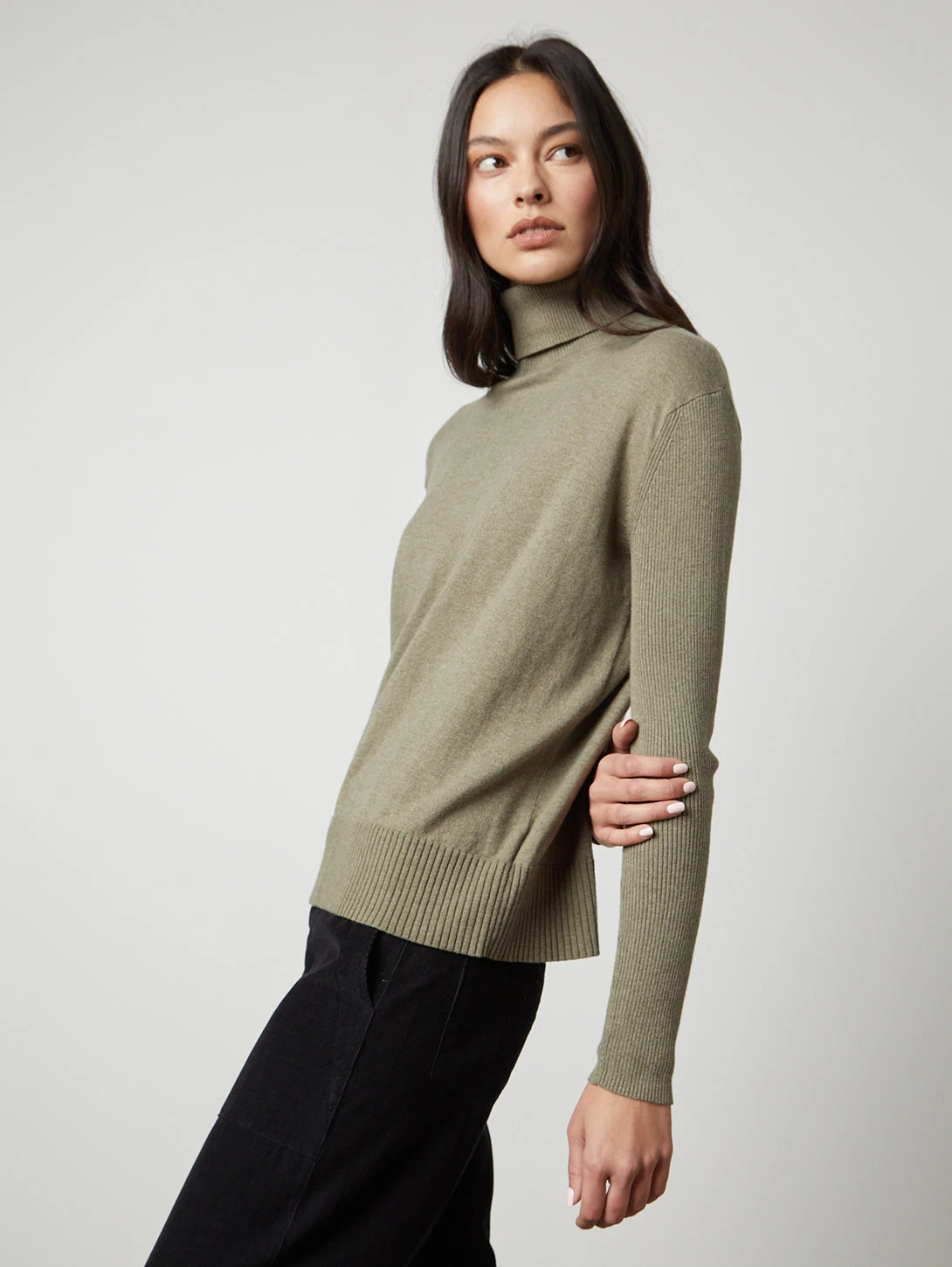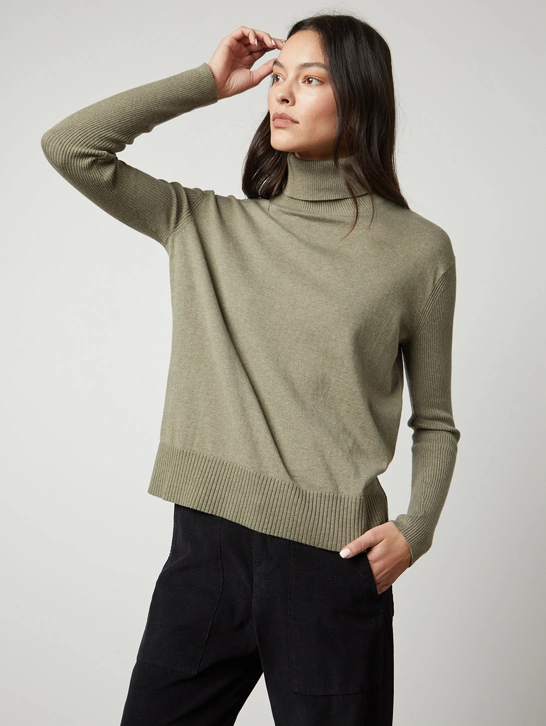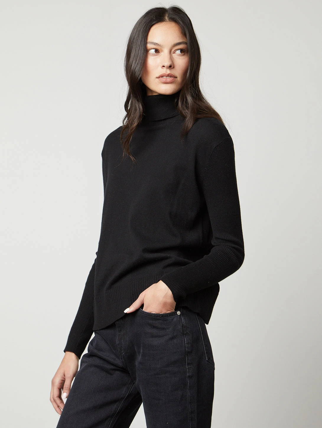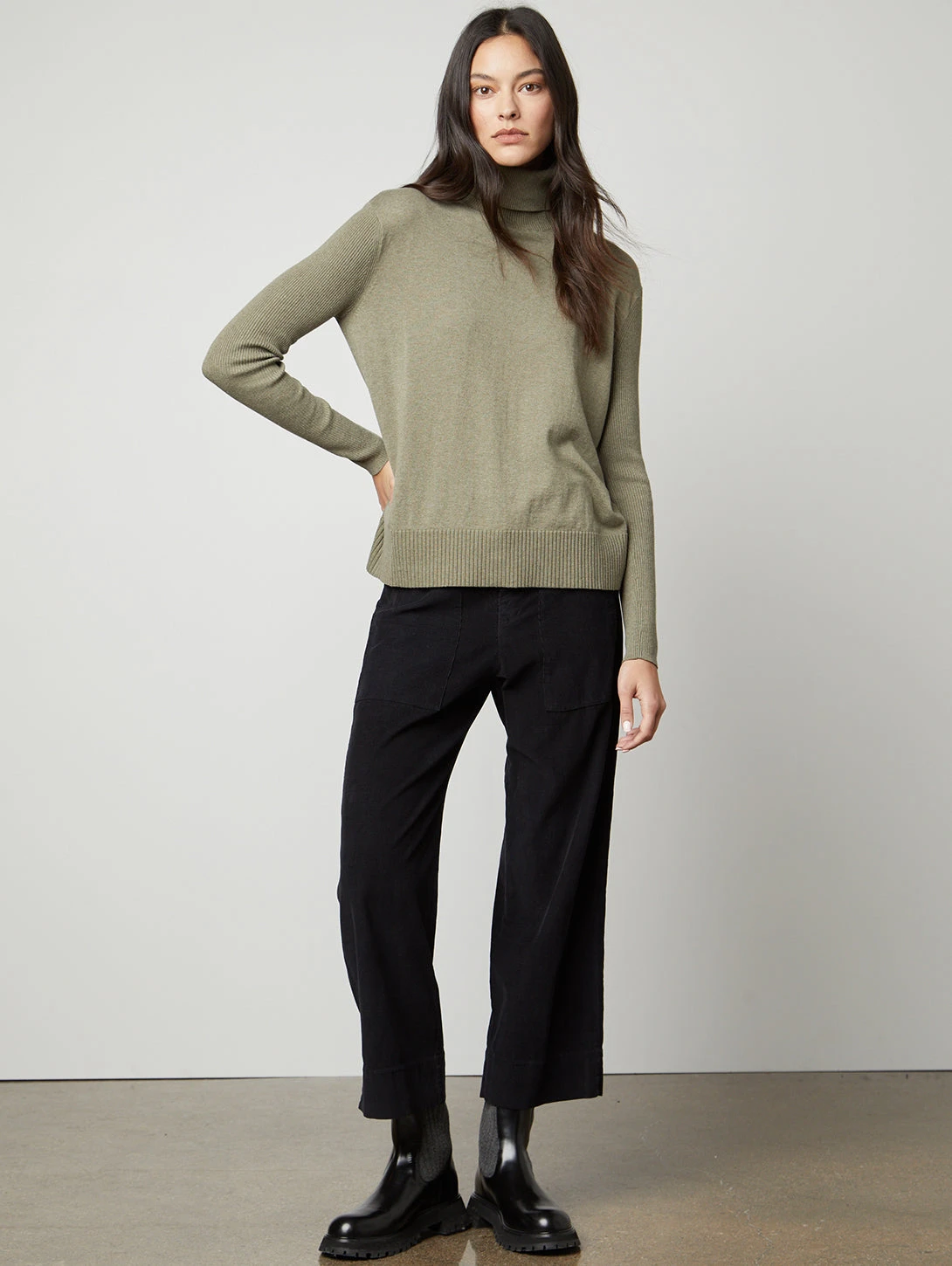 The Sally Turtleneck Sweater is perfect for cooler days. Crafted from a comfortable blend of Cotton and Cashmere, it features long sleeves, a ribbed turtleneck, and trims for a classic look. Layer this sweater on autumn or winter days to stay warm and stylish.