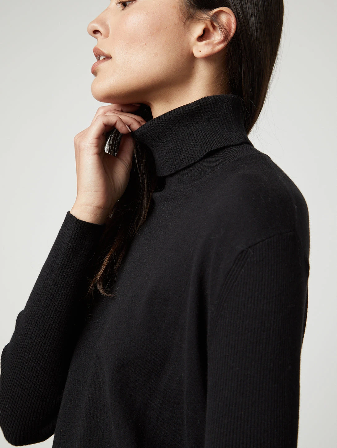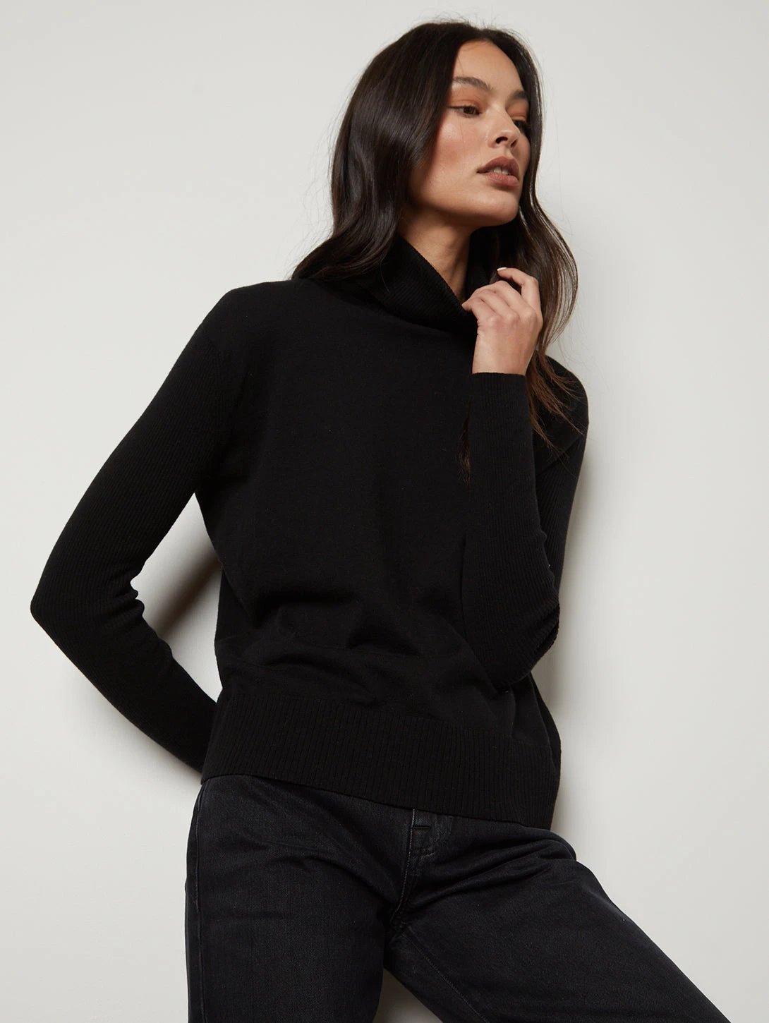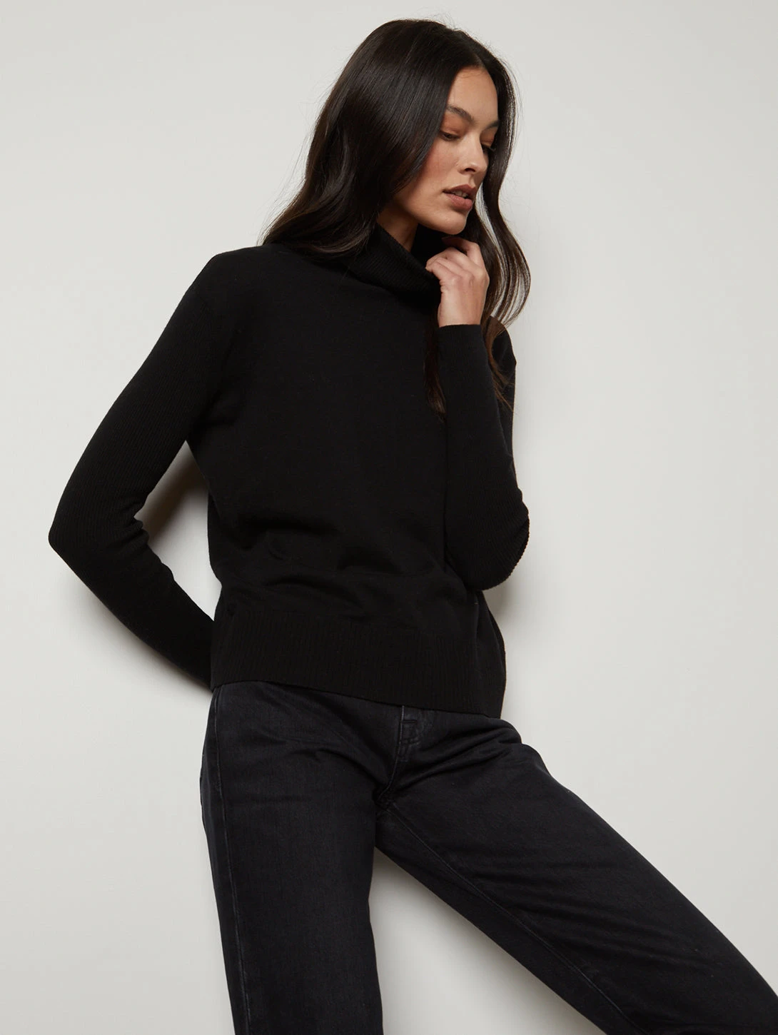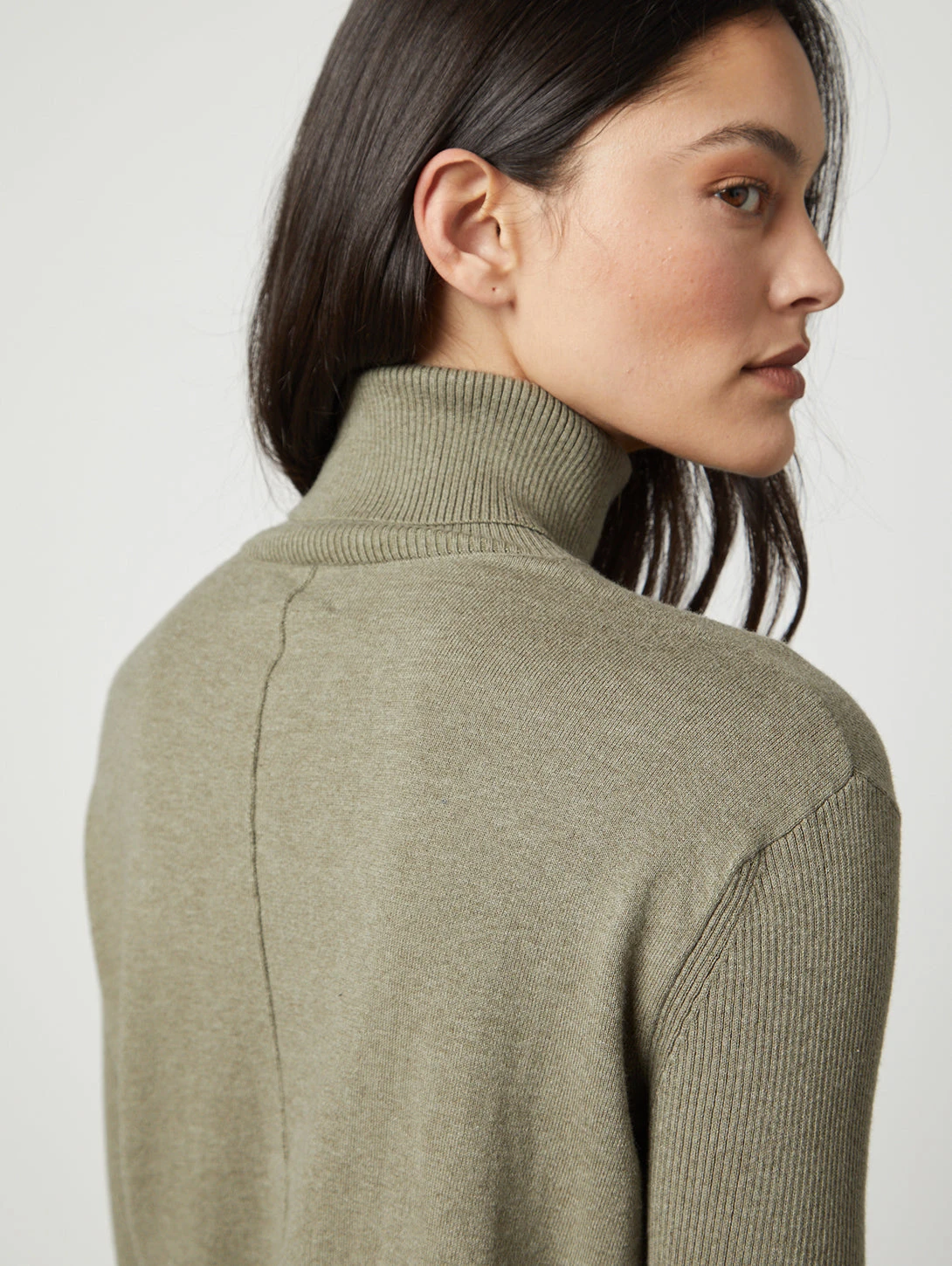 The Sally Turtleneck Sweater is perfect for cooler days. Crafted from a comfortable blend of Cotton and Cashmere, it features long sleeves, a ribbed turtleneck, and trims for a classic look. Layer this sweater on autumn or winter days to stay warm and stylish.